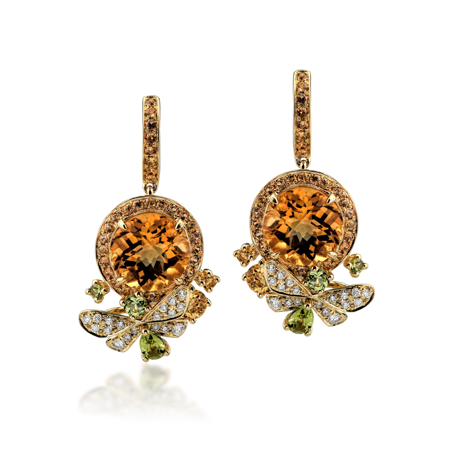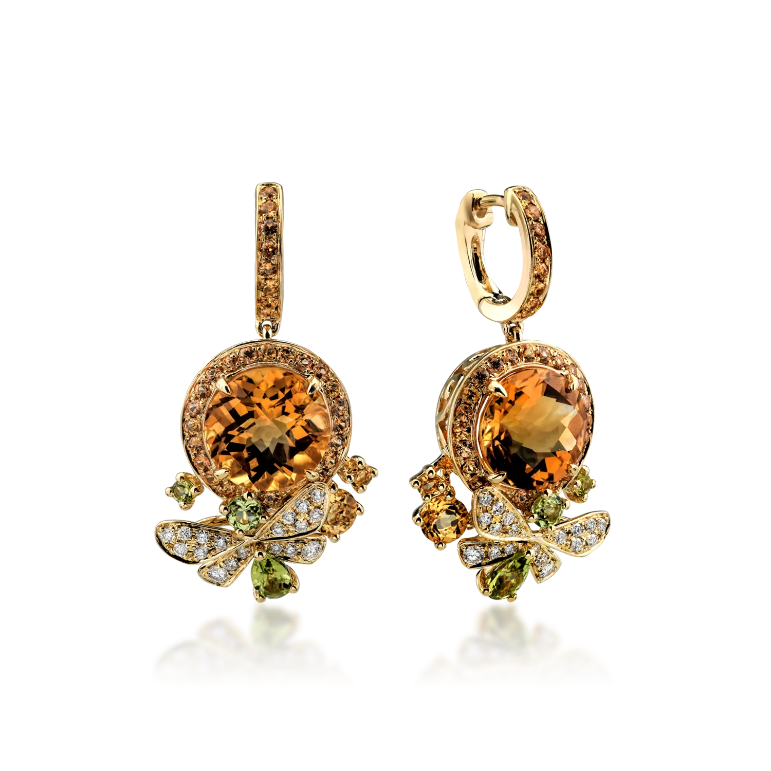 Cercei din aur galben cu pietre pretioase si semipretioase de 10.39ct