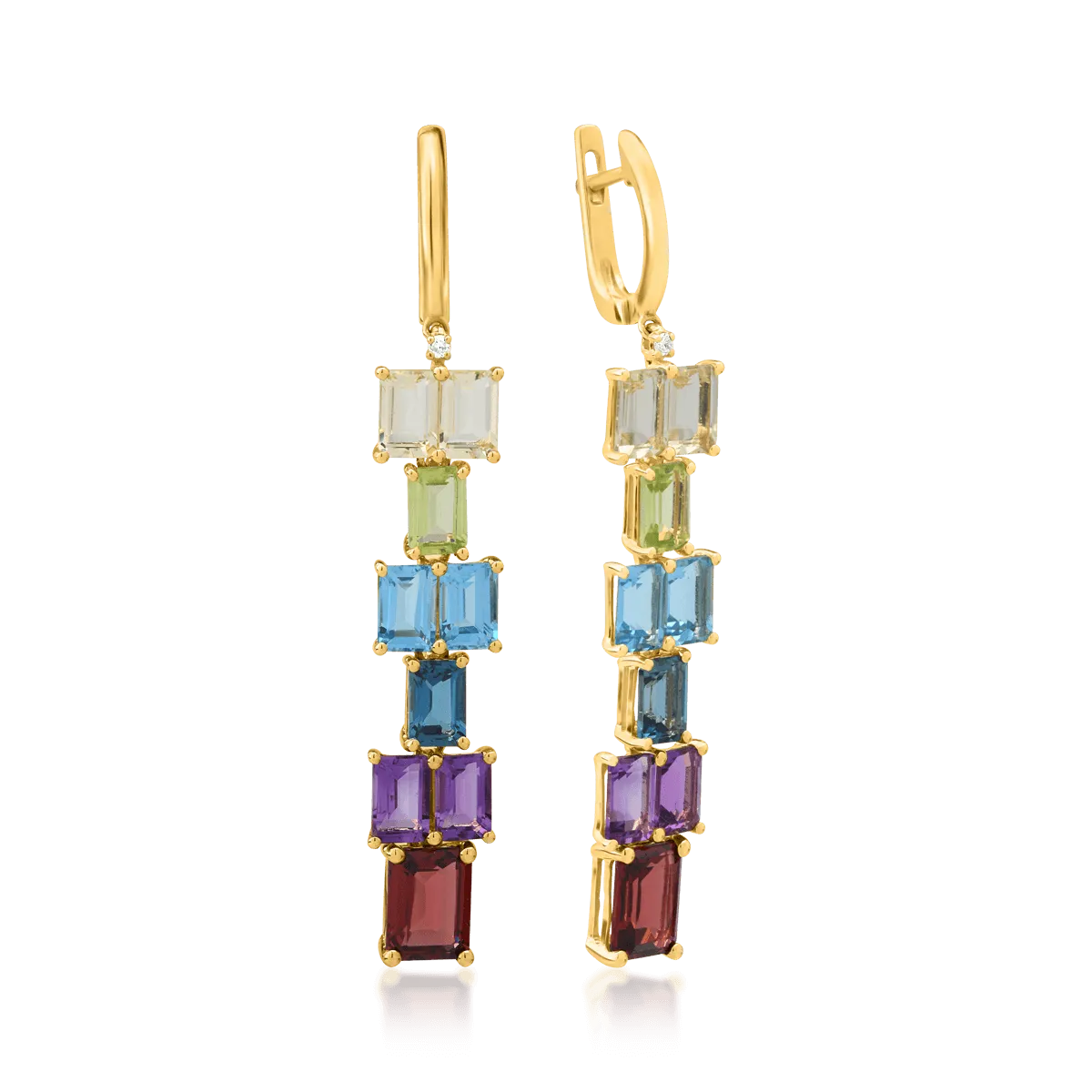 Cercei din aur galben cu pietre pretioase si semipretioase de 12.28ct