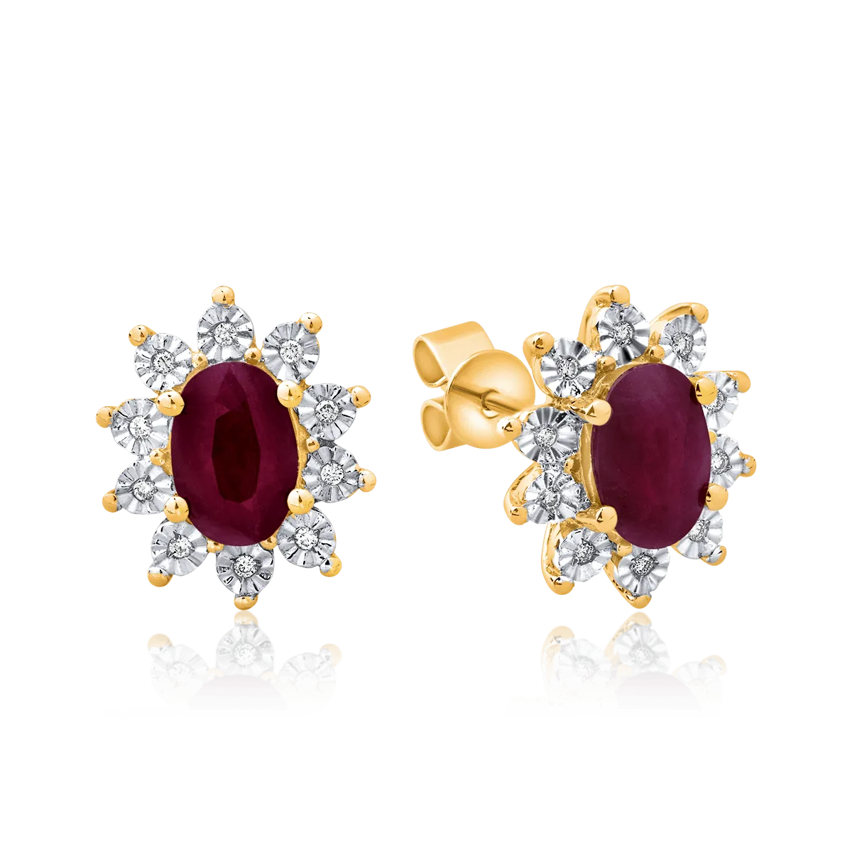 Cercei din aur galben cu rubine ovale de 1.79ct si diamante de 0.06ct