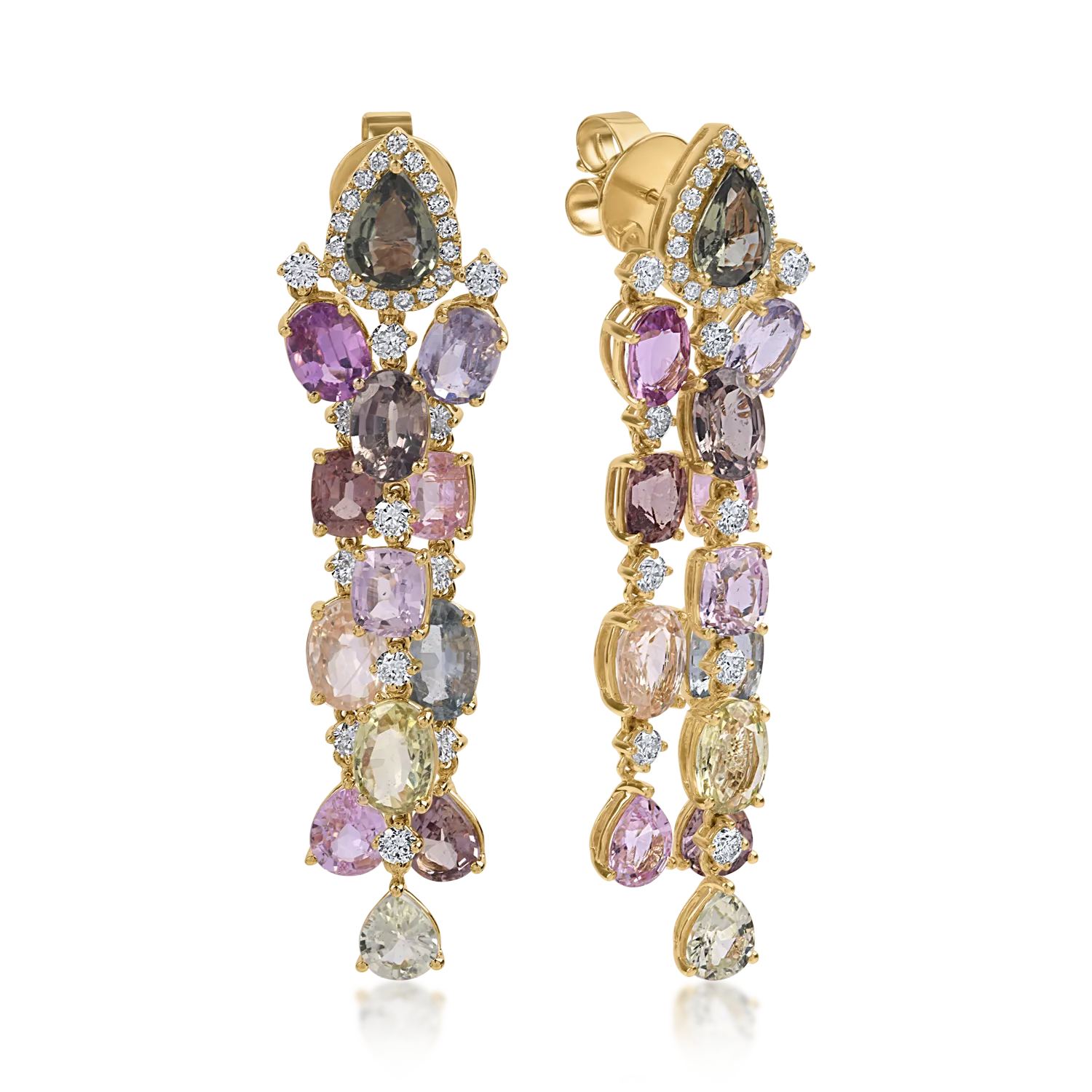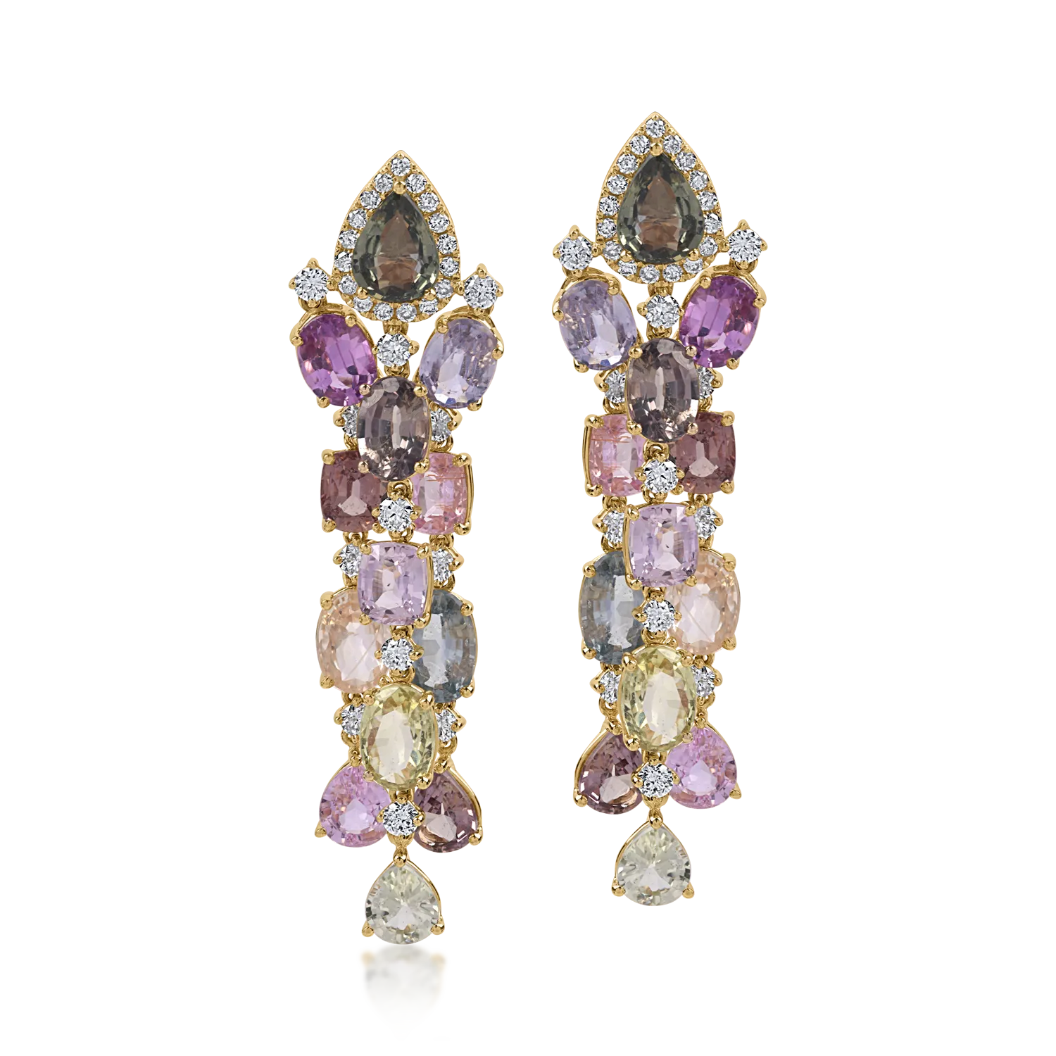 Cercei din aur galben cu safire multicolore de 21.69ct si diamante de 1.56ct