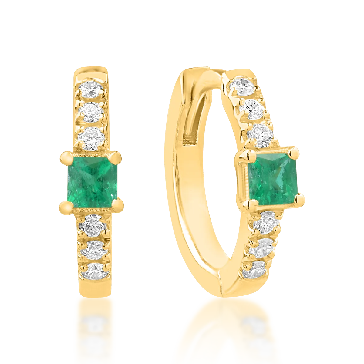 Cercei din aur galben cu smaralde princess de 0.08ct si diamante round de 0.06ct pentru copii
