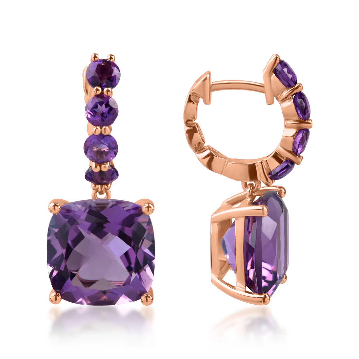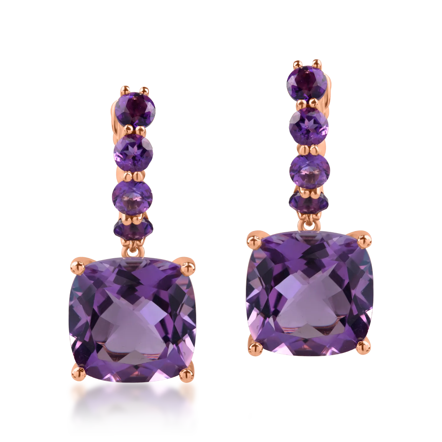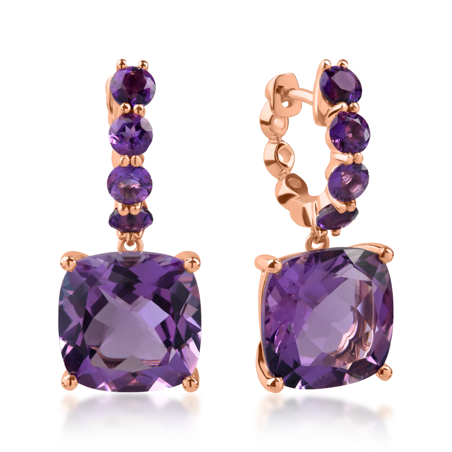 Cercei din aur roz cu ametiste cushion si rotunde de 8.3ct