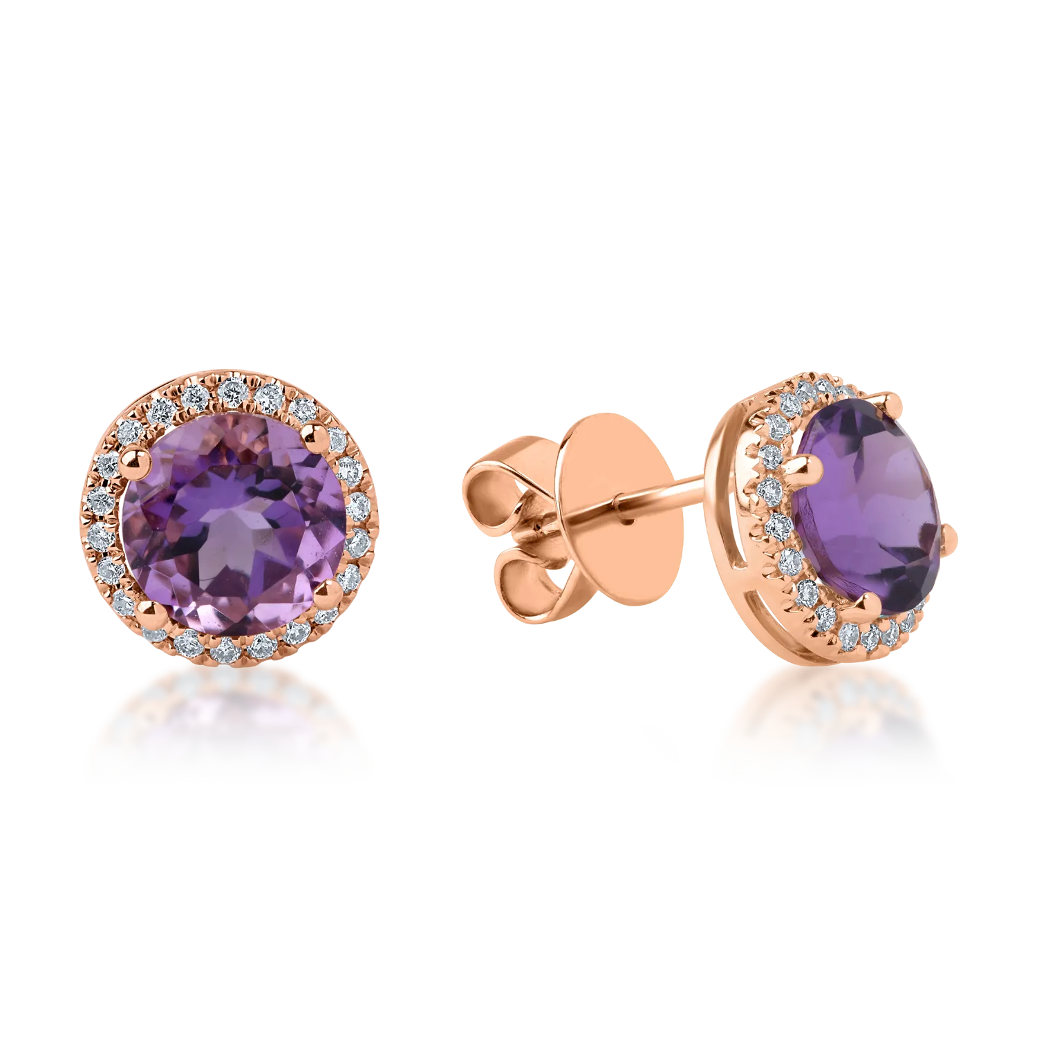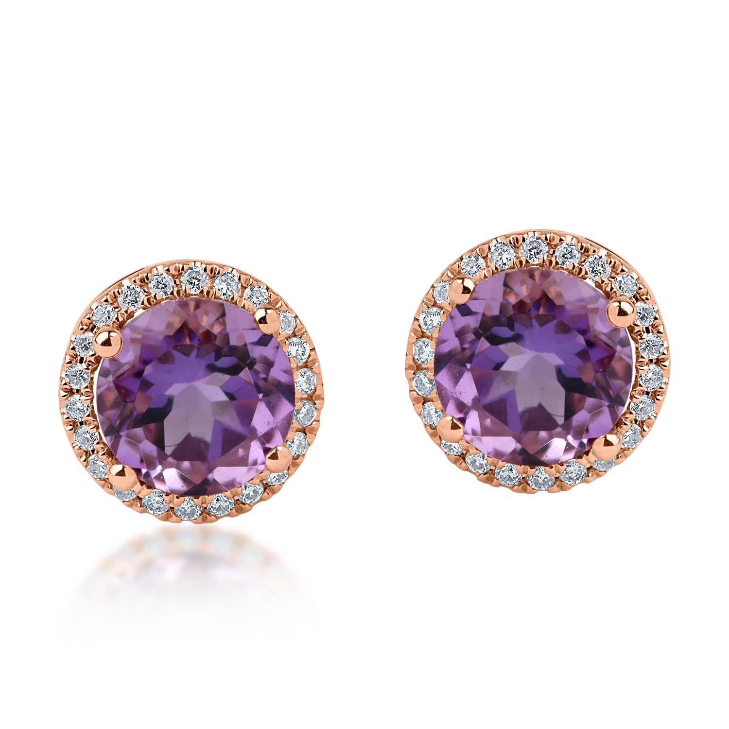 Cercei din aur roz cu ametiste de 2.5ct si diamante de 0.2ct
