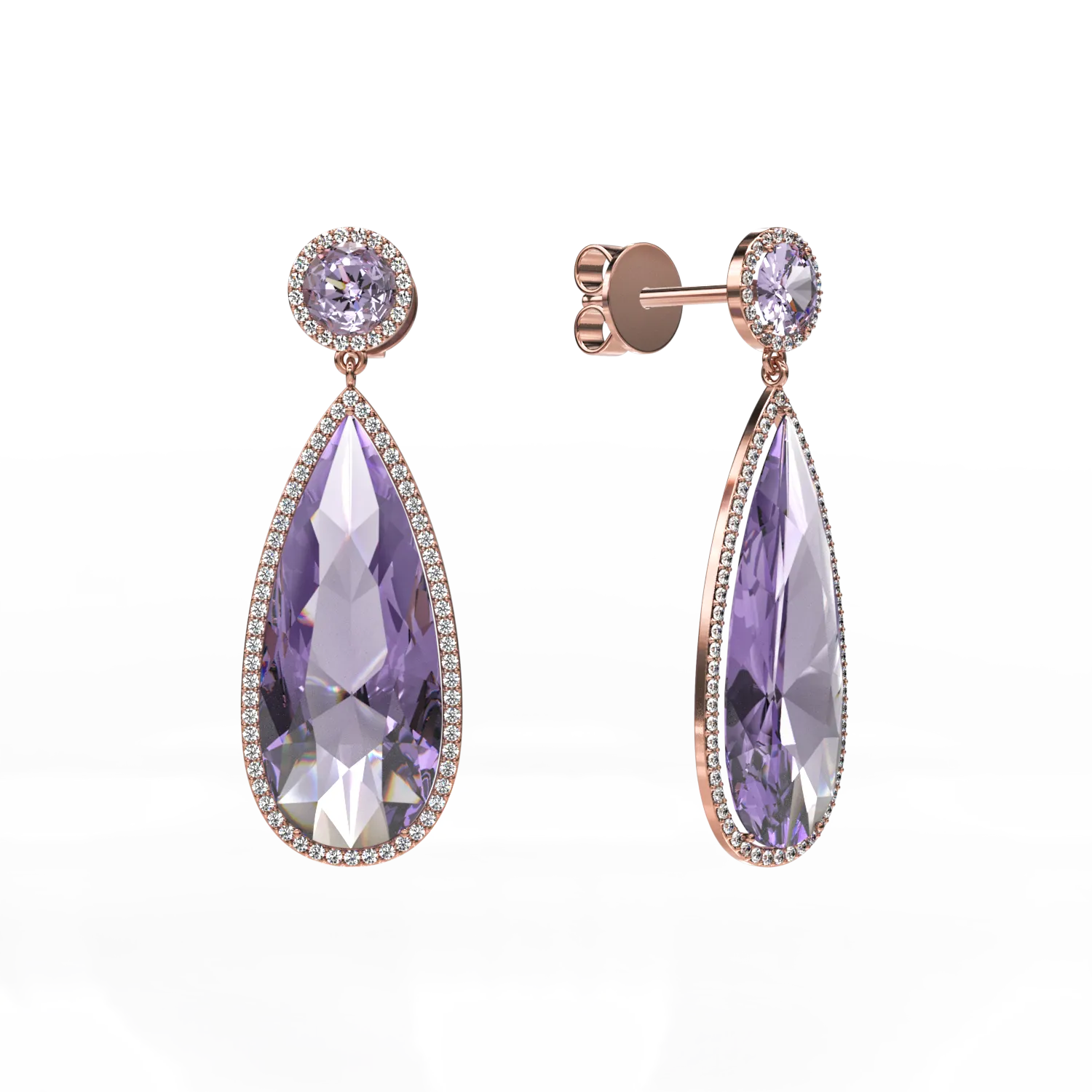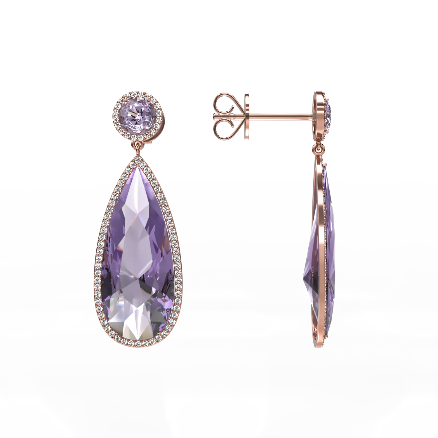 Cercei din aur roz cu ametiste pear de 13.85ct si diamante de 0.571ct