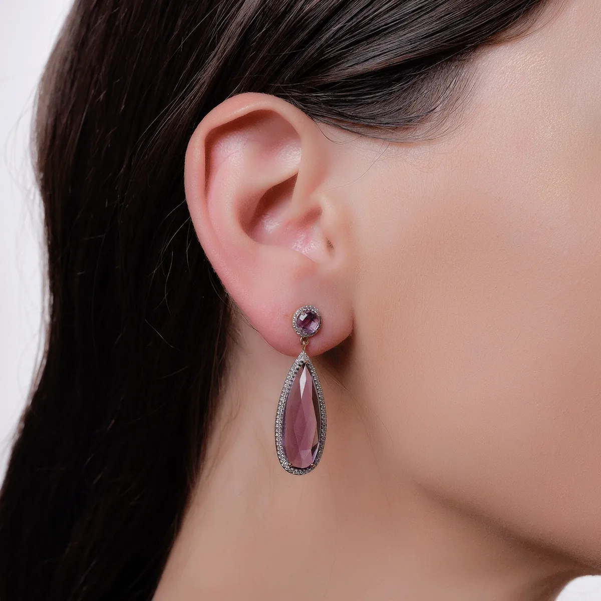 Paseste in lumea seducatoare a bijuteriilor pregatite sa cucereasca privirile. Cerceii din aur roz cu ametiste pear de 13.85ct fascineaza prin dimensiunea impresionanta si intensitatea culorii. Taietura alungita pune in valoare profunzimea nuantelor, iar diamantele de 0.571ct adauga o stralucire clara, completand perfect piesa. Designul atemporal transforma acesti cercei in accesoriul principal al unei tinute elegante, subliniind stilul si prezenta ta. Alege accesorii ce iti evidentiaza latura sofisticata. Descopera eleganta desavarsita TEILOR!