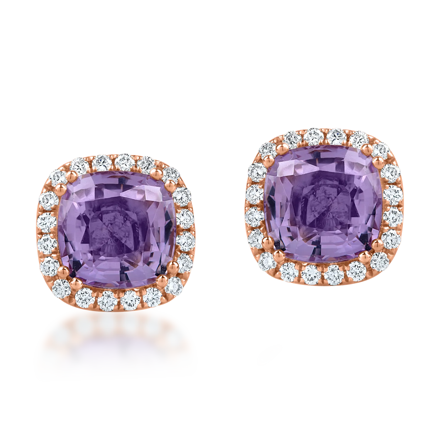 Cercei din aur roz cu ametiste rectangulare de 4.8ct si diamante de 0.4ct