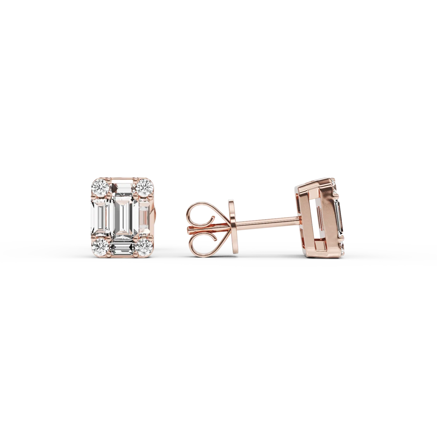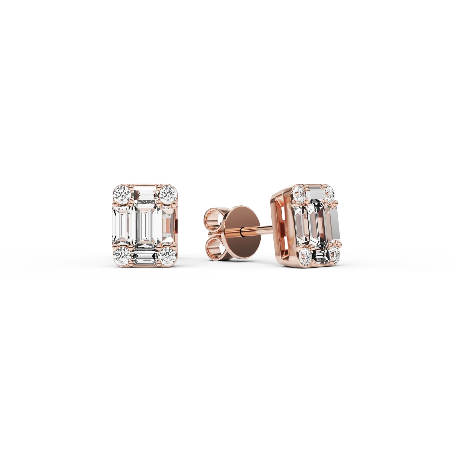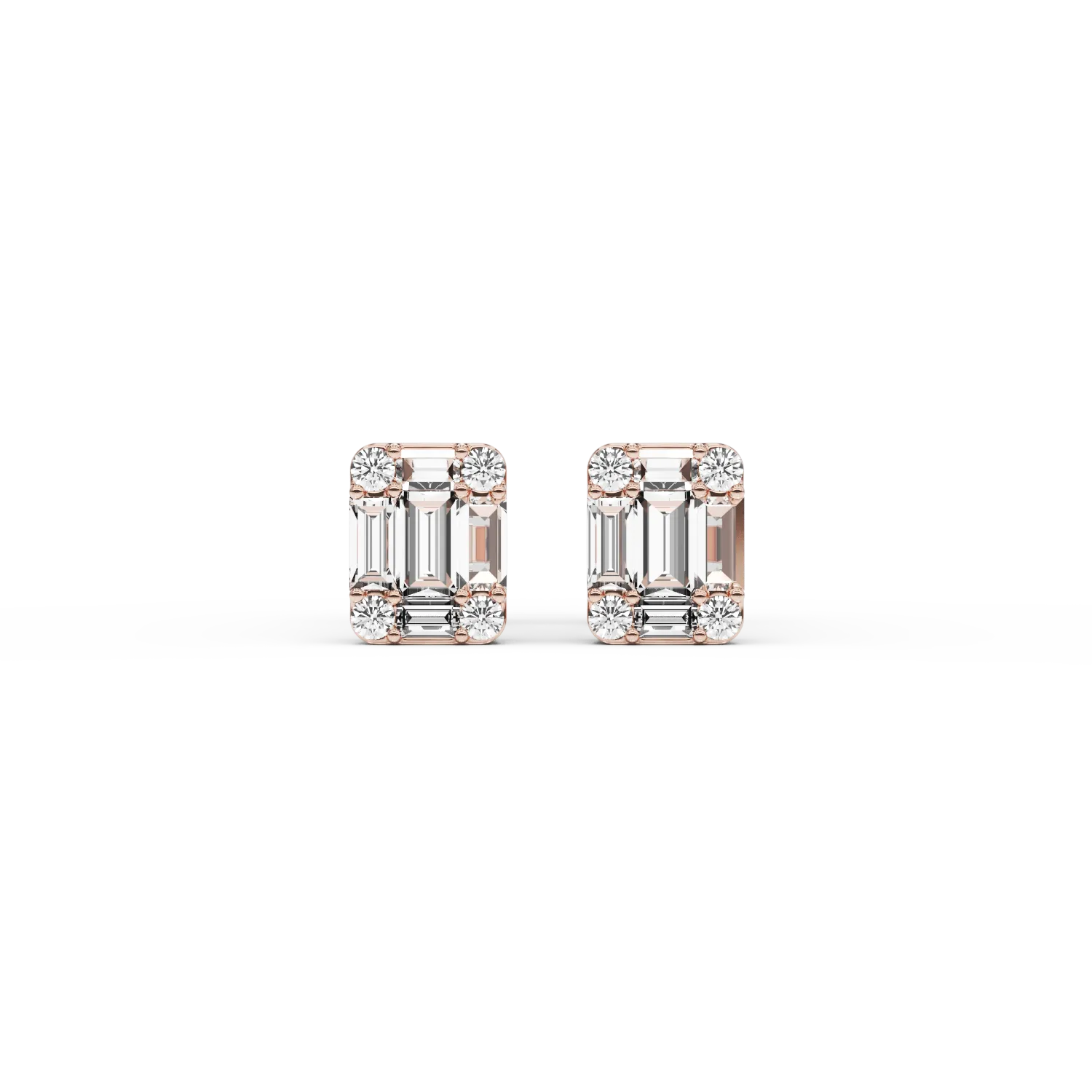 Cercei din aur roz cu diamante baguette si rotunde de 0.6ct