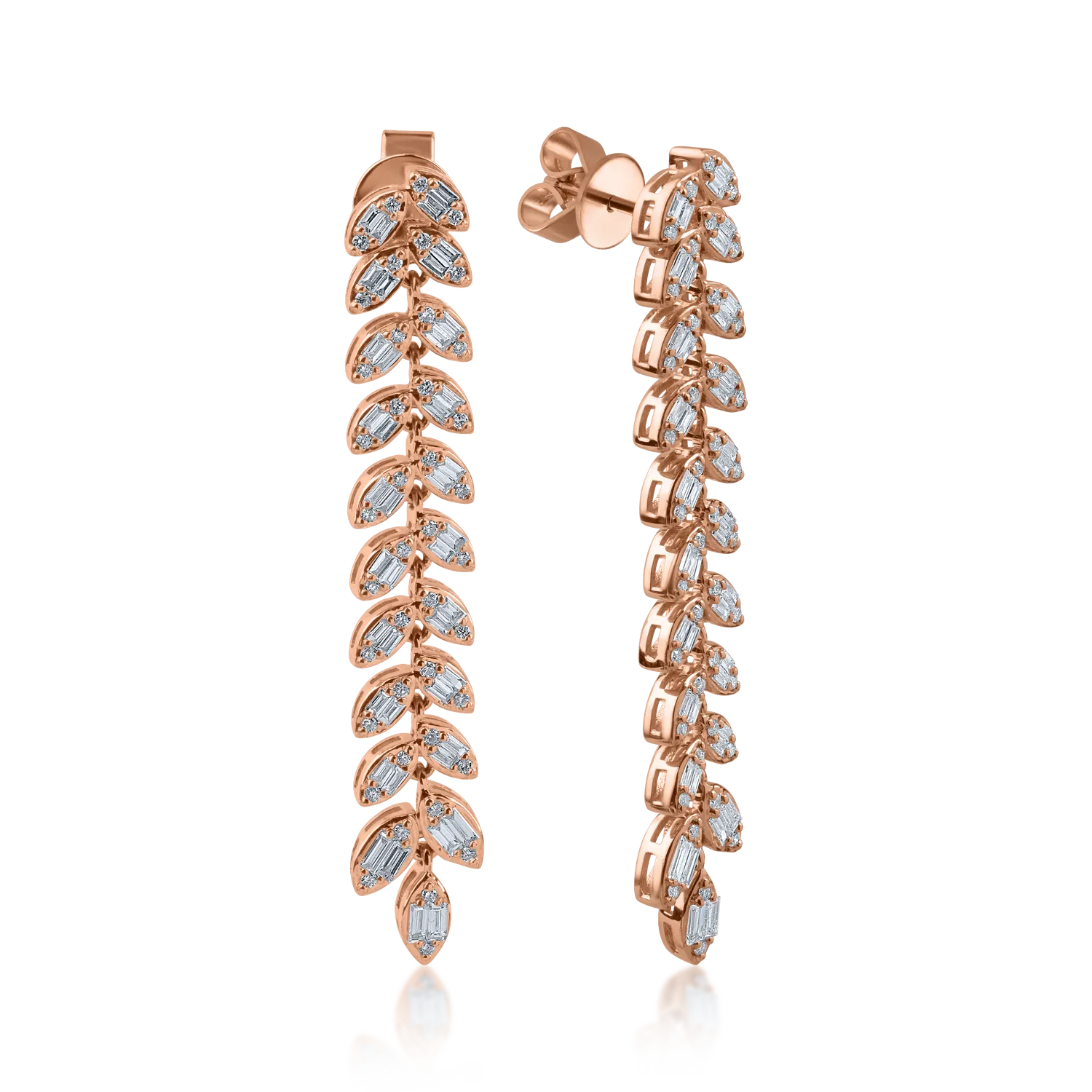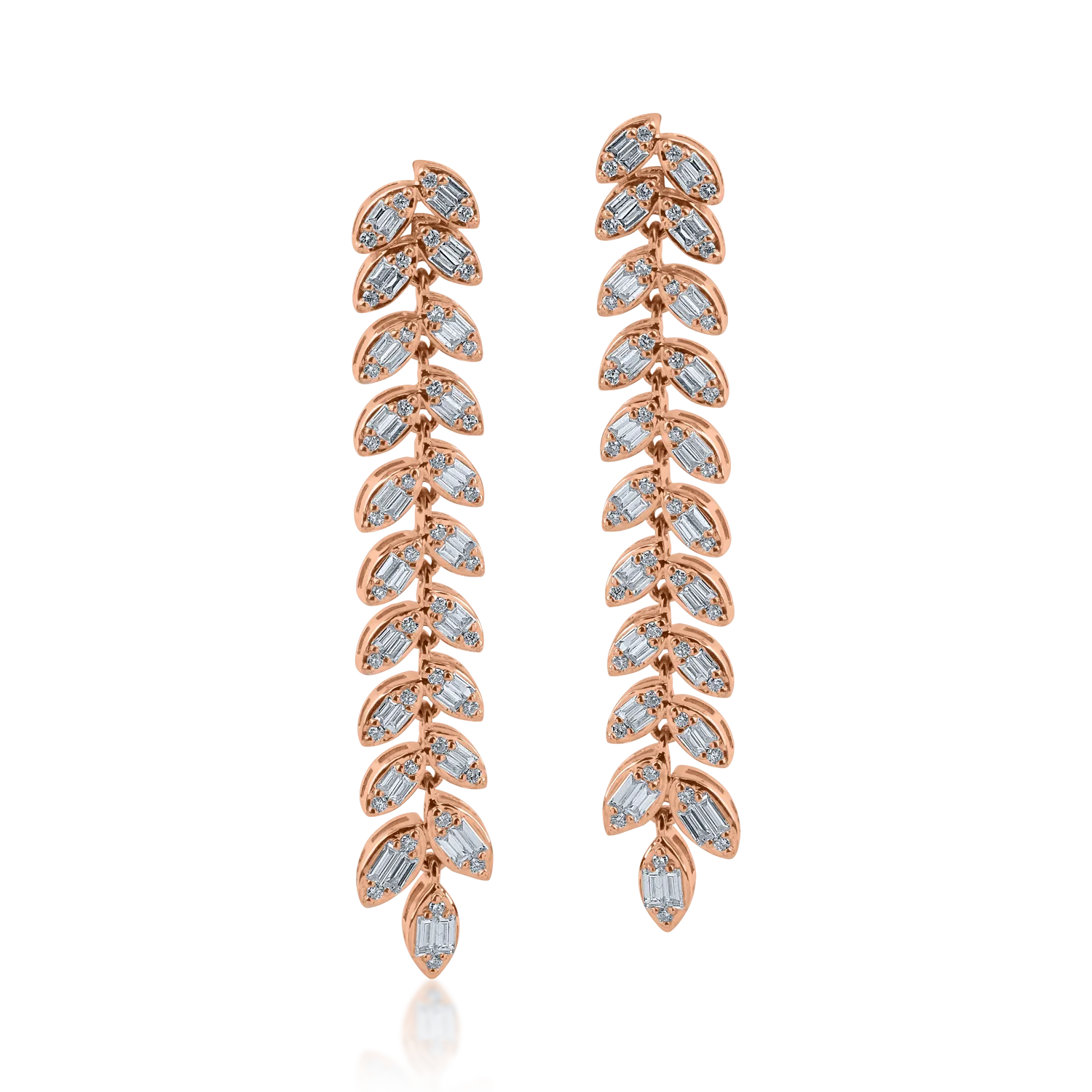 Cercei din aur roz cu diamante baguette si rotunde de 0.909ct
