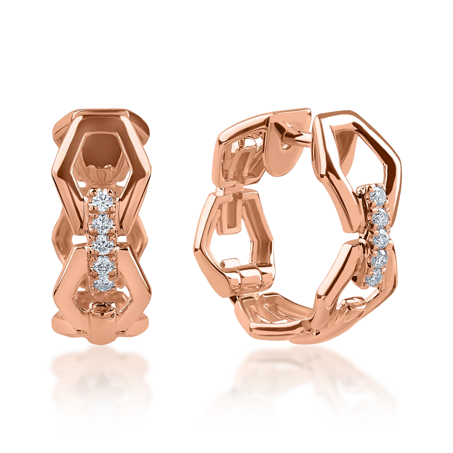 Dezvaluie-ti stilul prin micile detalii. Aceasta pereche de cercei din aur roz cu diamante de 0.066ct povesteste despre frumusetea subtila pe care vrei sa o exprimi in cat mai multe feluri. Bijuteria completeaza orice tinuta si transmite feminitate. In fiecare zi. Cu fiecare pas.
