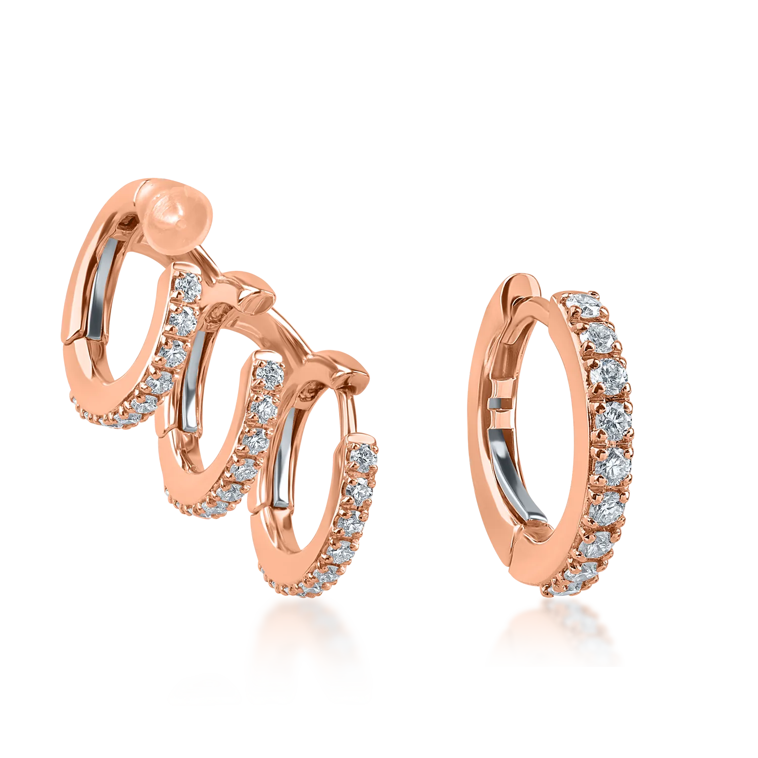 Bijuteriile vorbesc despre tine. Tu spune-ti povestea cu noi. Cerceii din aur roz cu diamante de 0.56ct stralucesc intr-un joc hipnotizant de nuante, intensificat de fiecare raza de lumina. Lasa-i sa vorbeasca despre tine.
