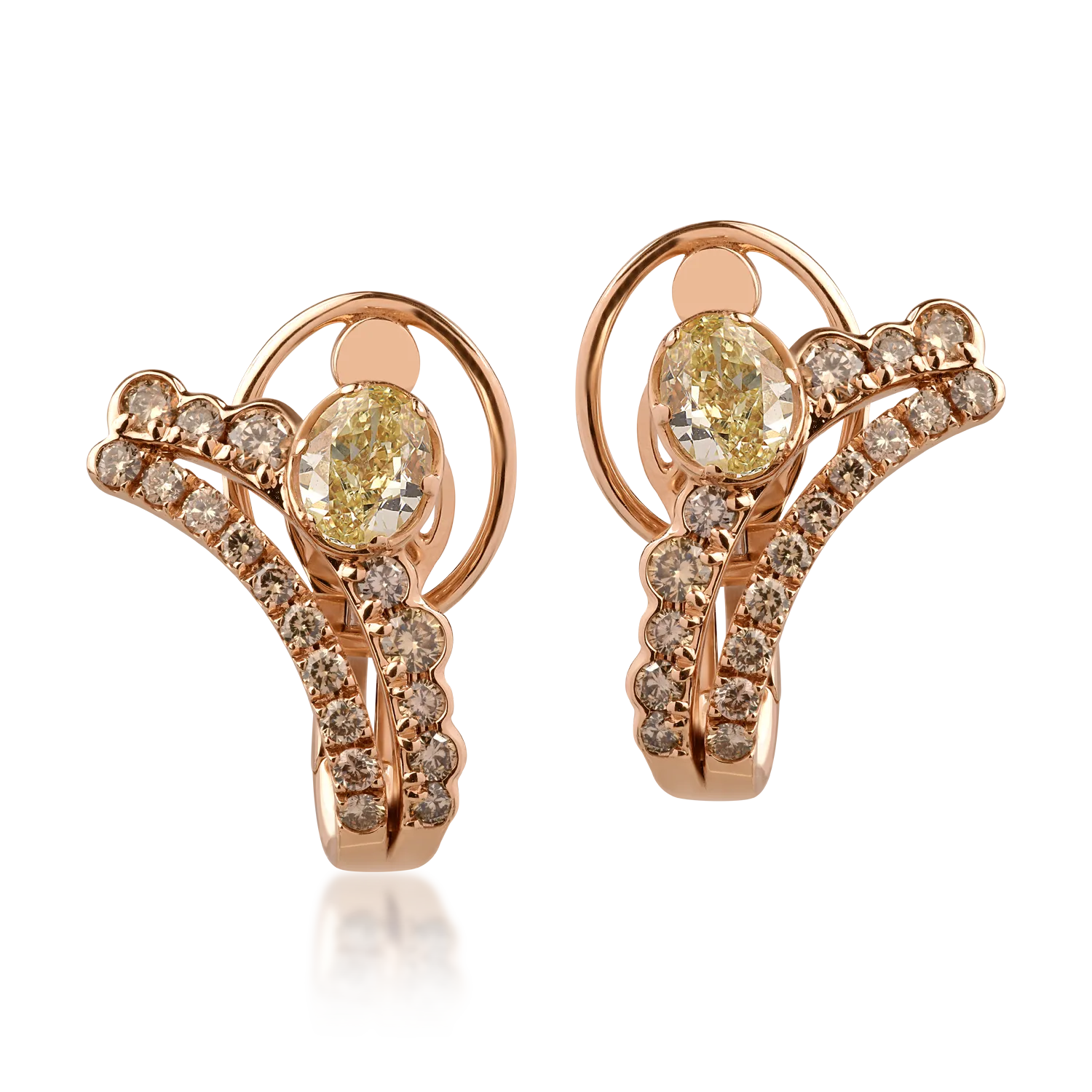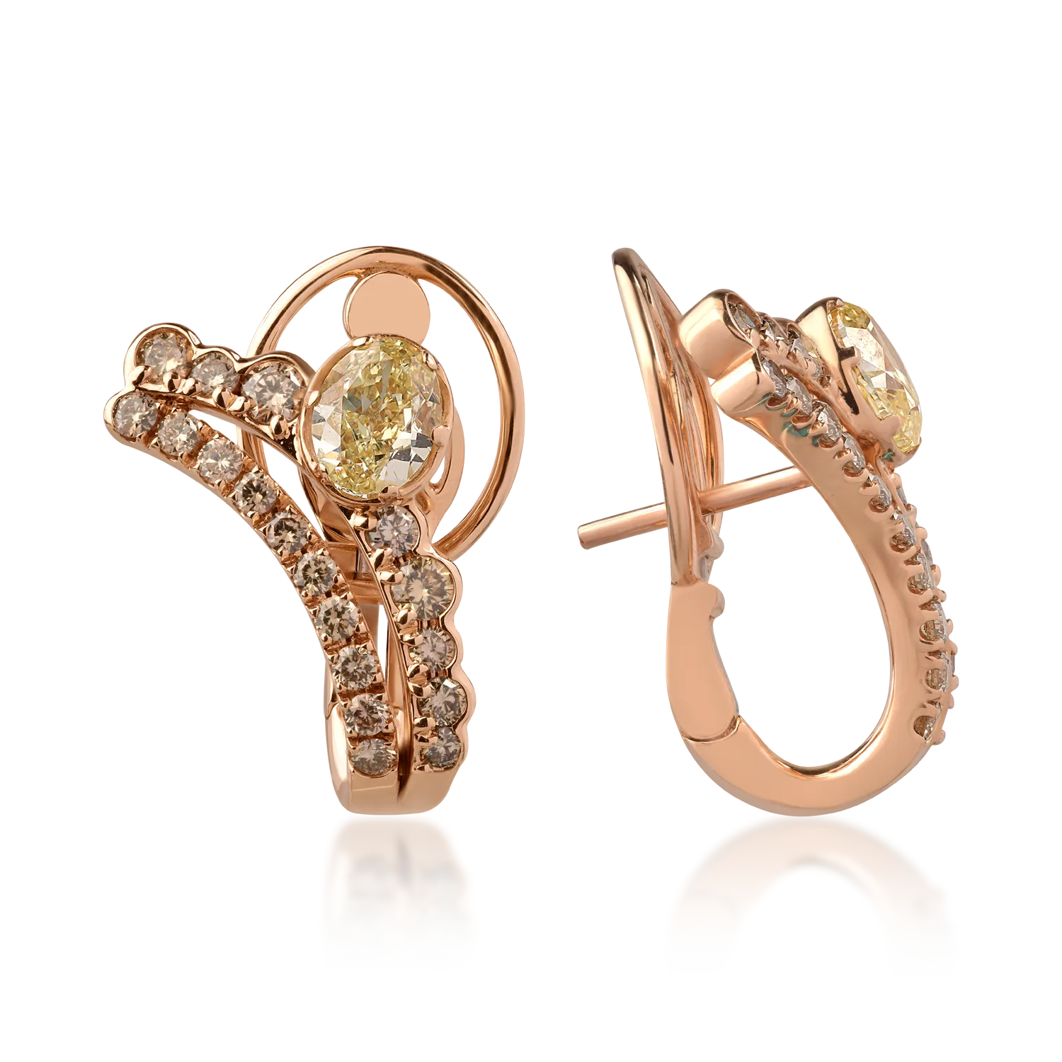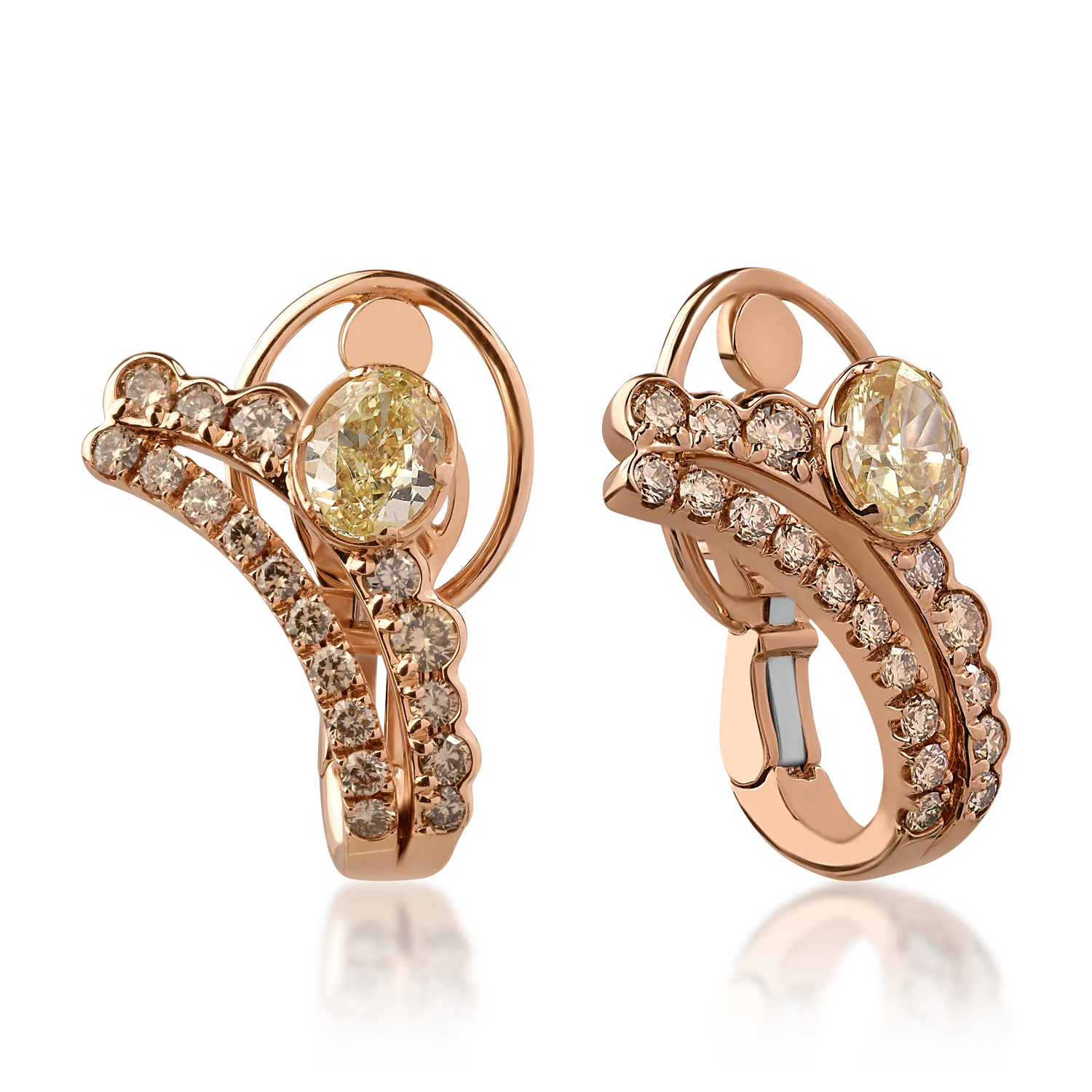 Cercei din aur roz cu diamante fancy galbene ovale de 1.63ct si diamante maro round de 1.1ct