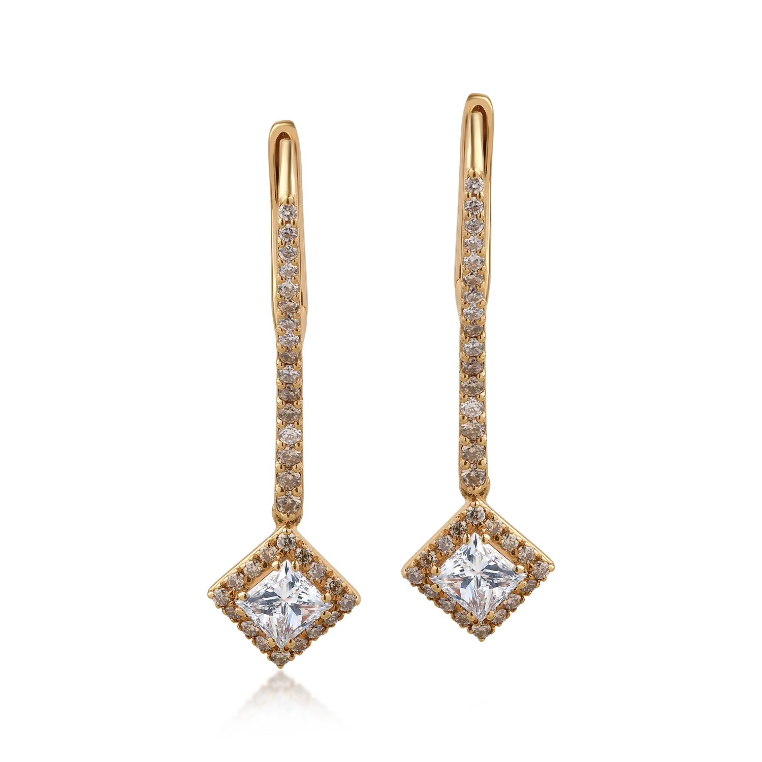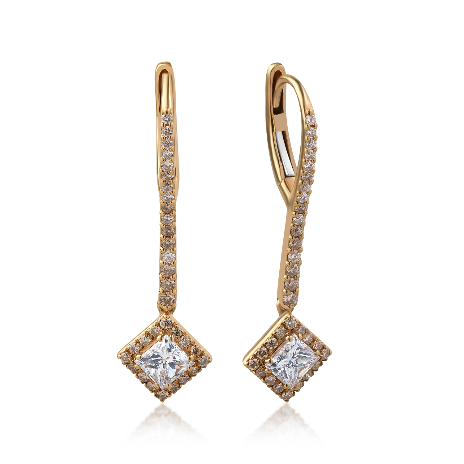 Cercei din aur roz cu diamante incolore de 1.22ct si diamante maro princess si round de 0.45ct