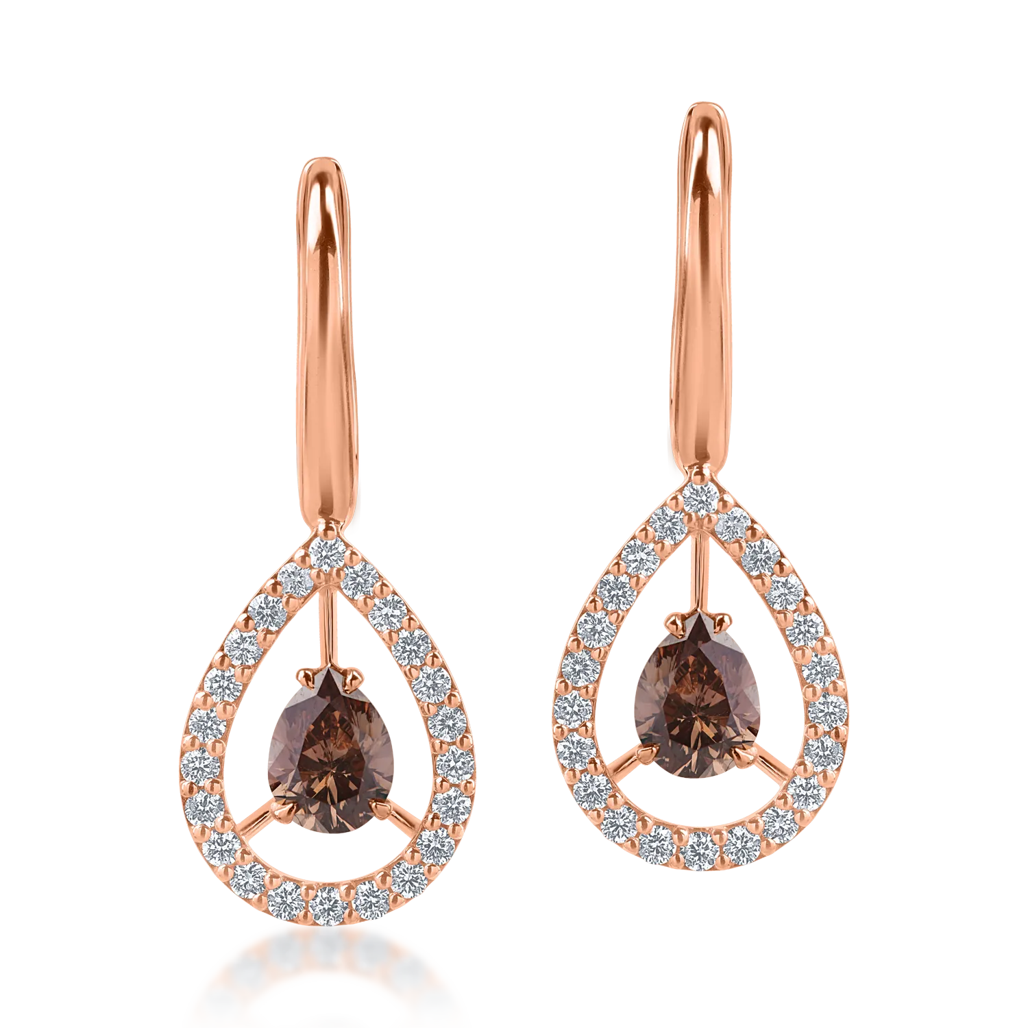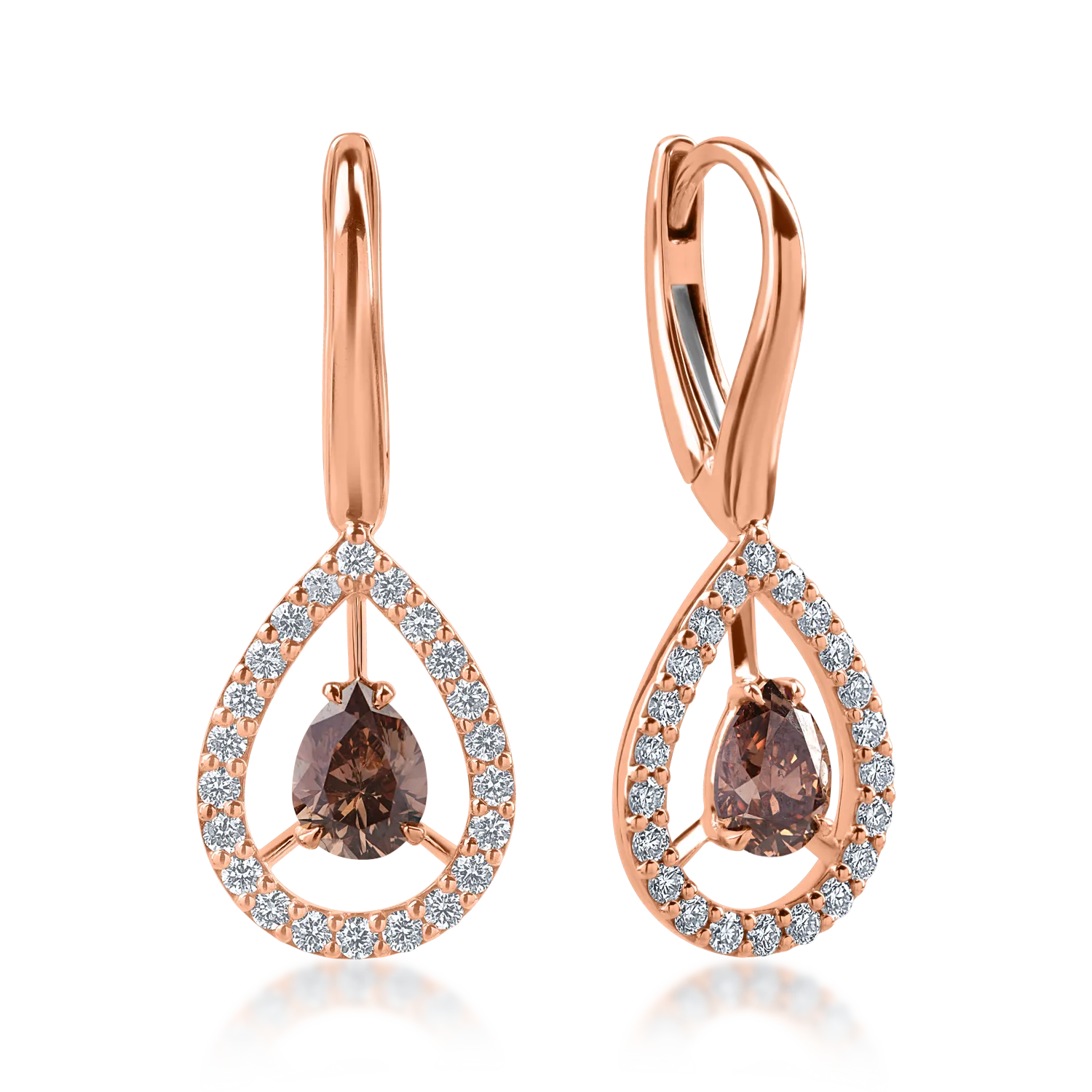 Cercei din aur roz cu diamante maro pear de 0.98ct si diamante incolore de 0.47ct