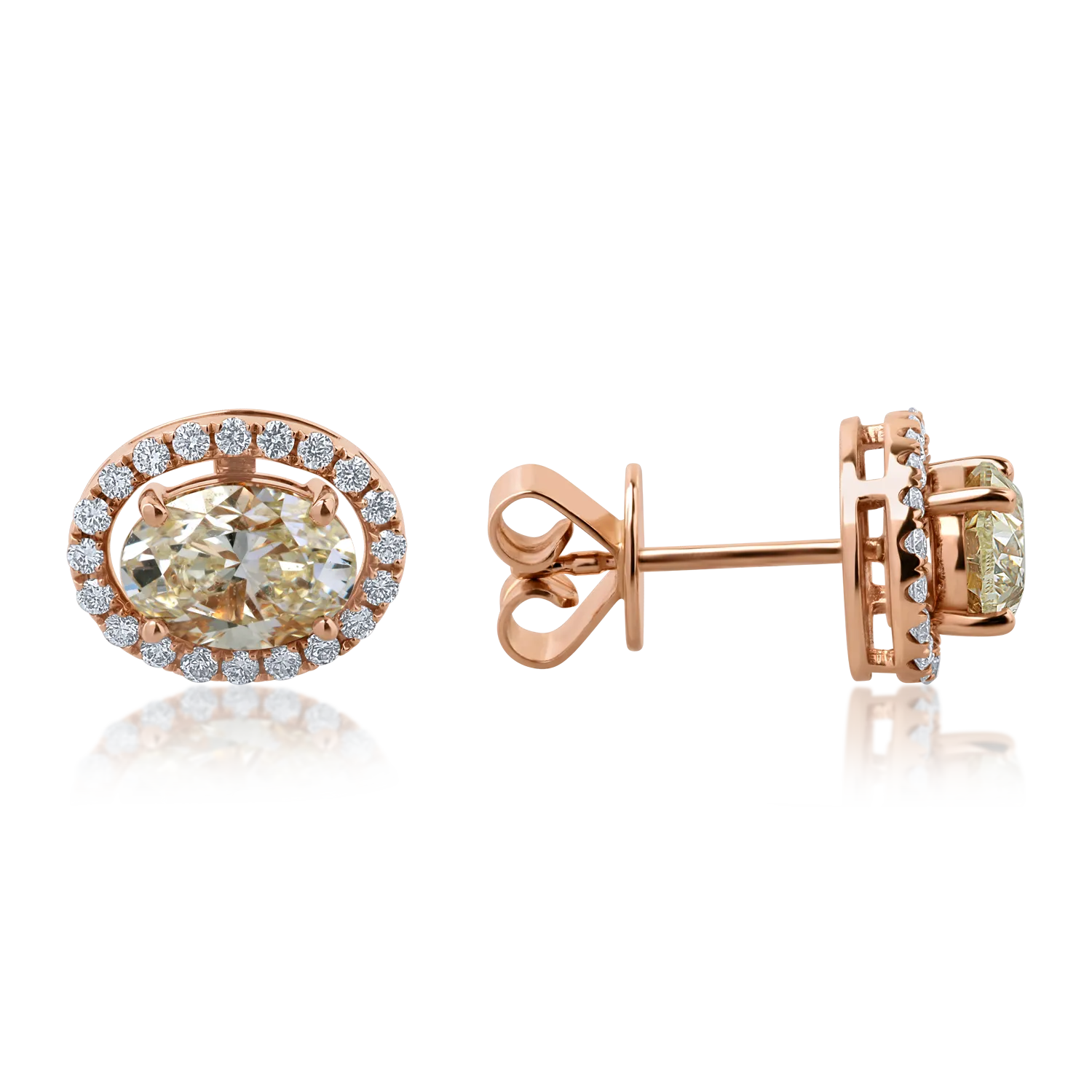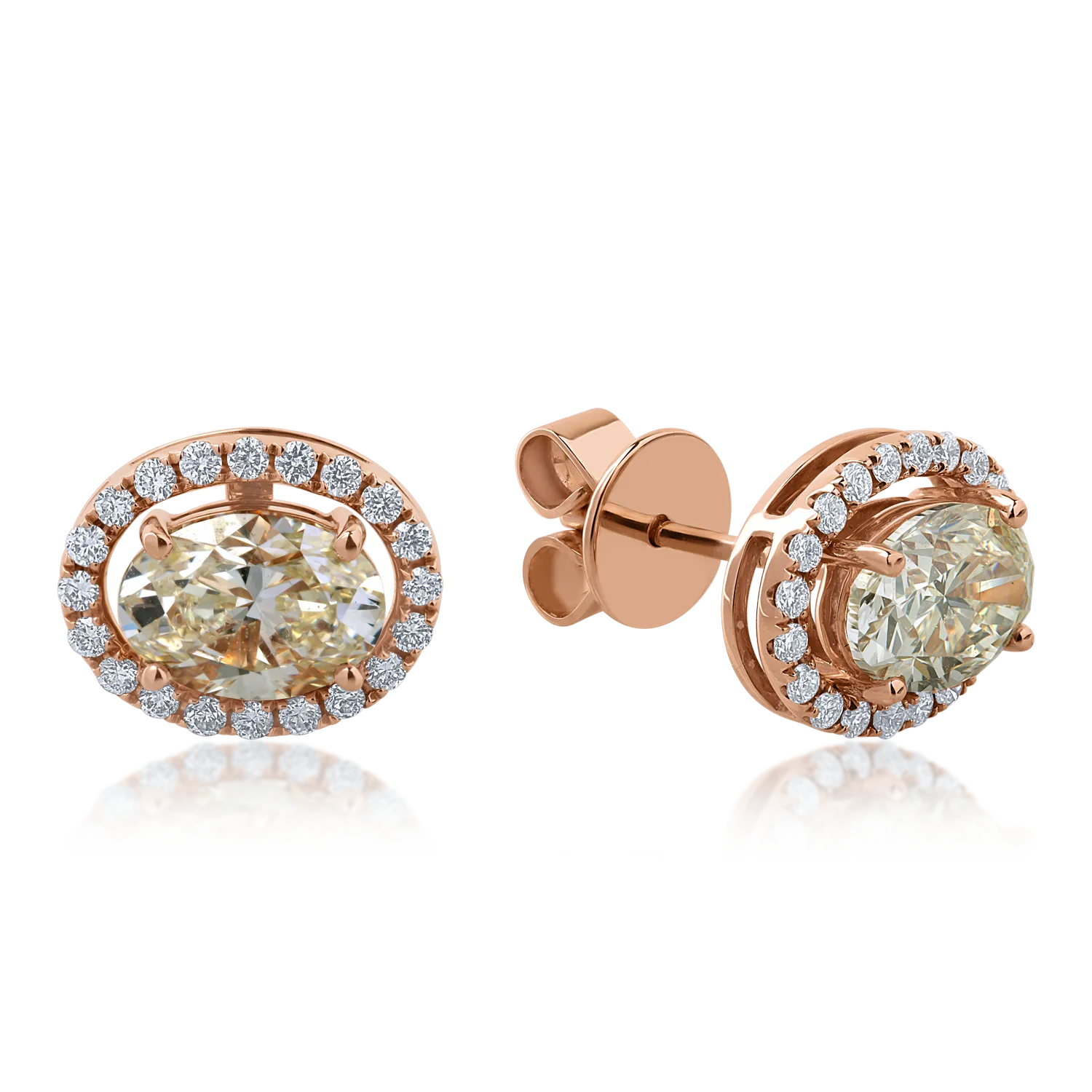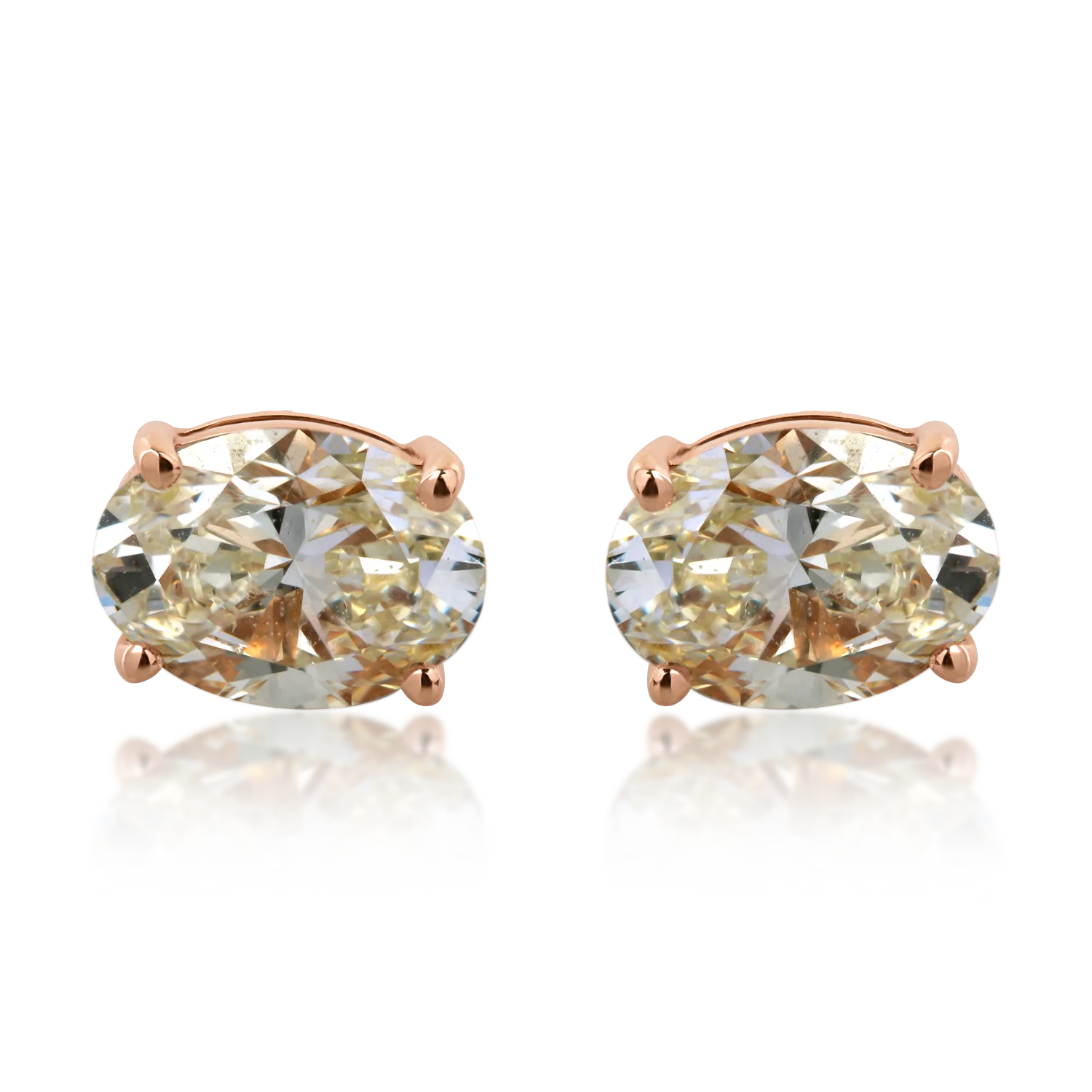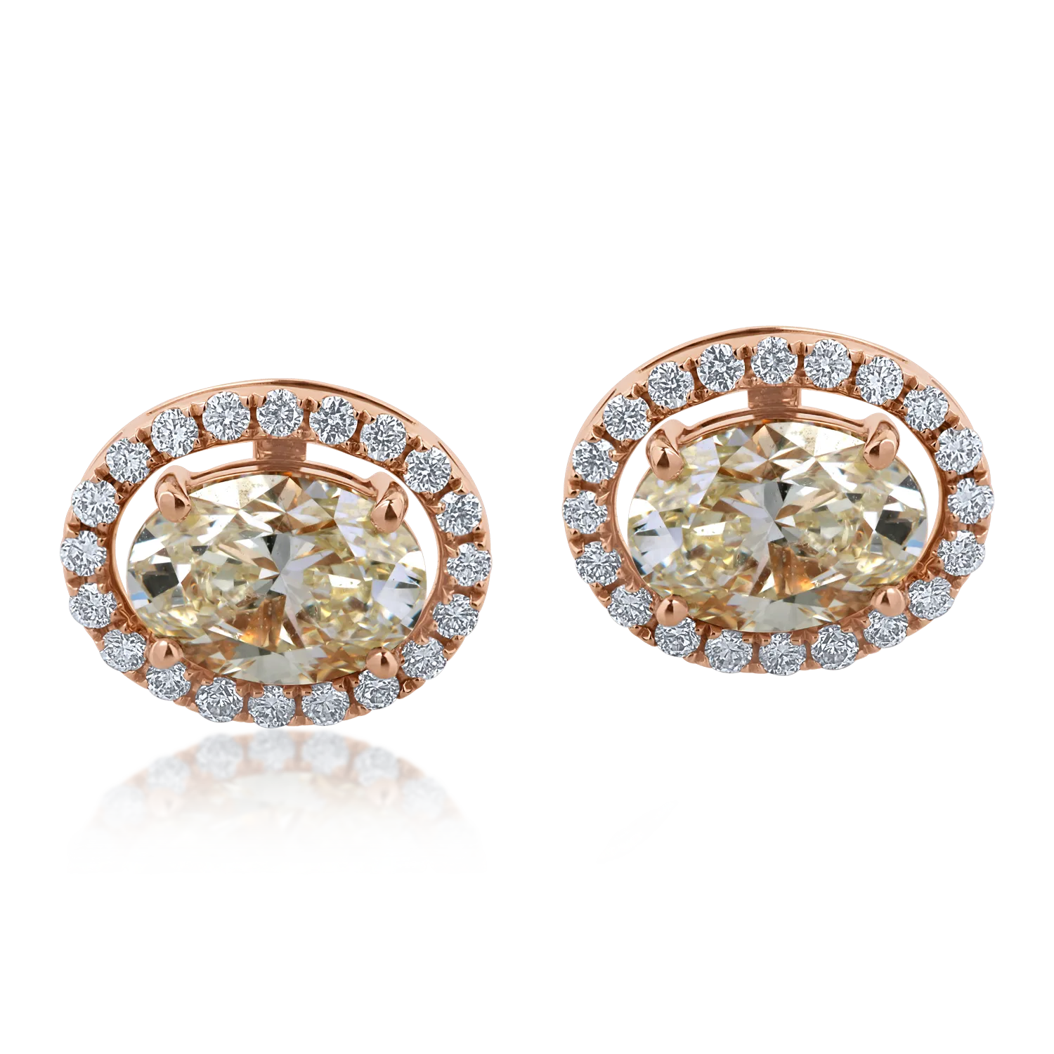 Cercei din aur roz cu diamante ovale si round de 2.29ct