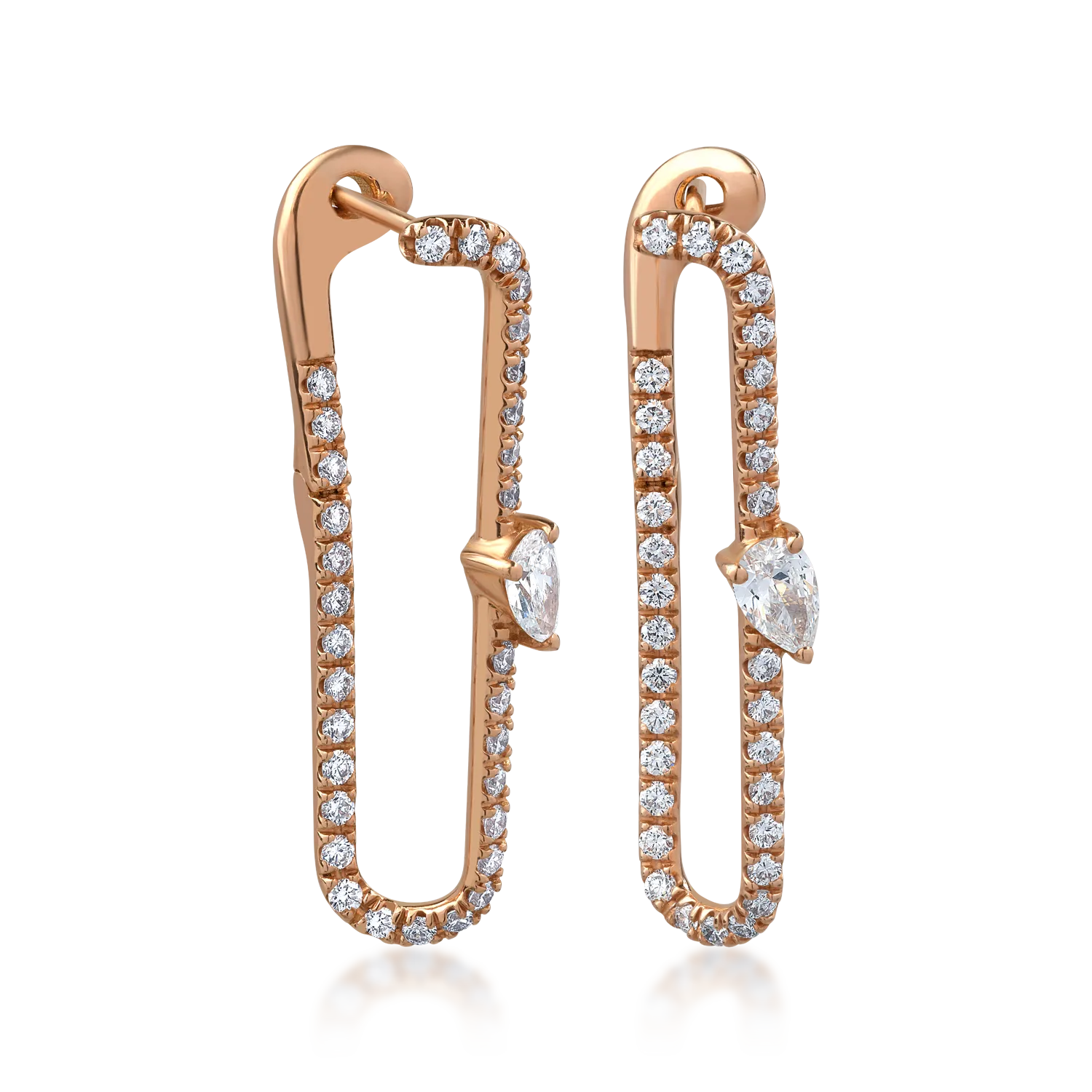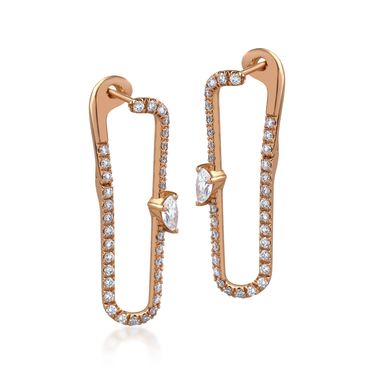 Cercei din aur roz cu diamante pear si round de 1.55ct