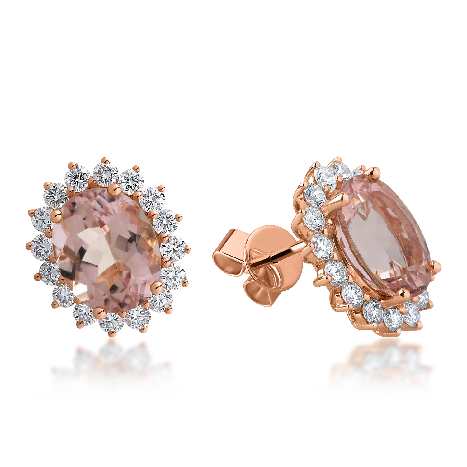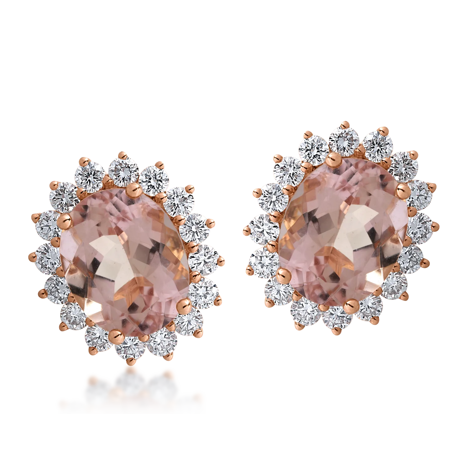 Cercei din aur roz cu morganite ovale de 5.19ct si diamante de 1.14ct