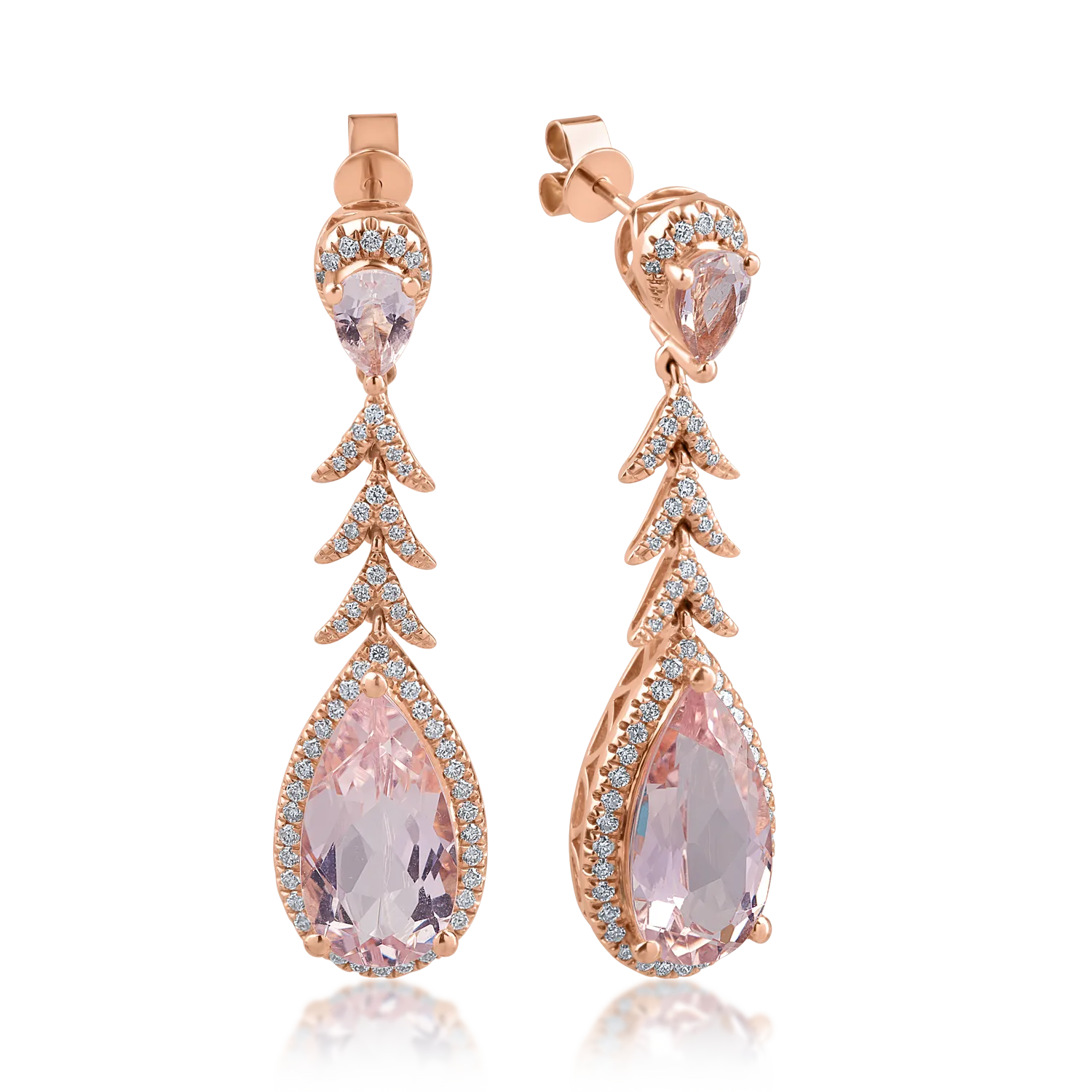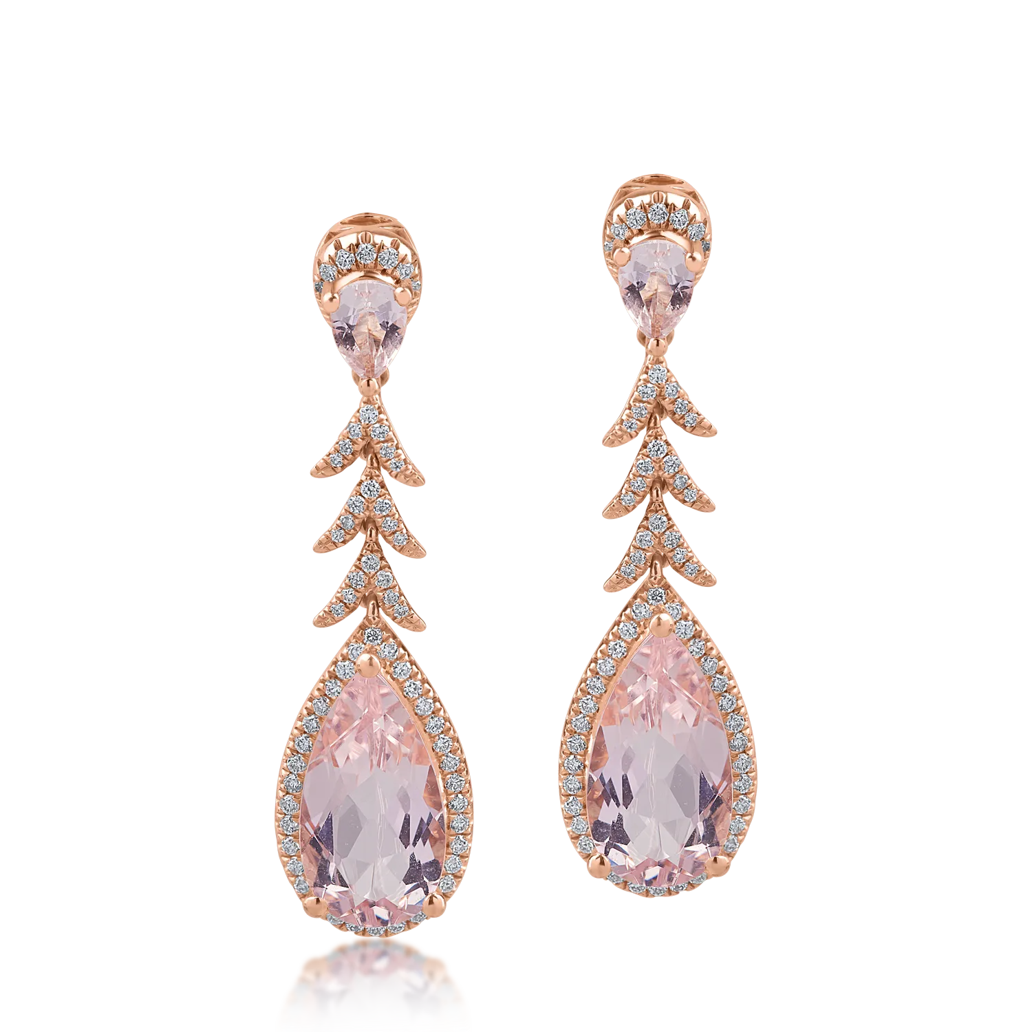 Cercei din aur roz cu morganite pear de 7.75ct si diamante de 0.66ct