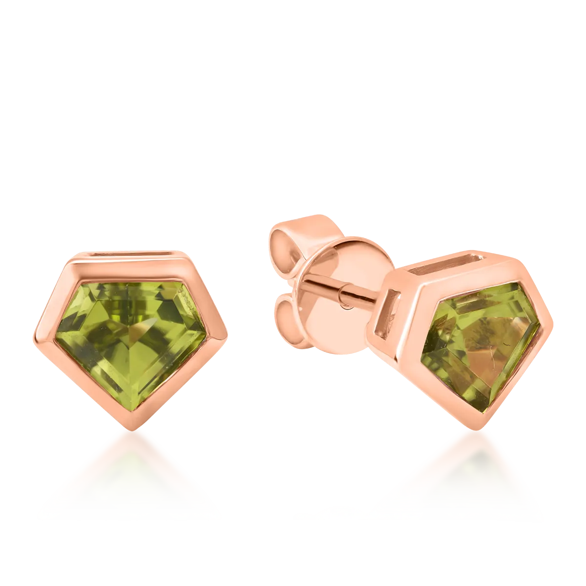 Cerceii din aur roz cu peridote de 1.28ct imbina tonurile calde ale metalului cu prospetimea vibranta a pietrelor verzi. Taietura speciala a peridotului accentueaza claritatea si luminozitatea acestuia, creand o armonie vizuala plina de vitalitate. Aurul roz adauga un aer romantic si rafinat, perfect pentru o aparitie eleganta si moderna. O bijuterie ce surprinde prin echilibru si finete. O combinatie naturala a luxului, o piesa memorabila pentru femeile puternice.