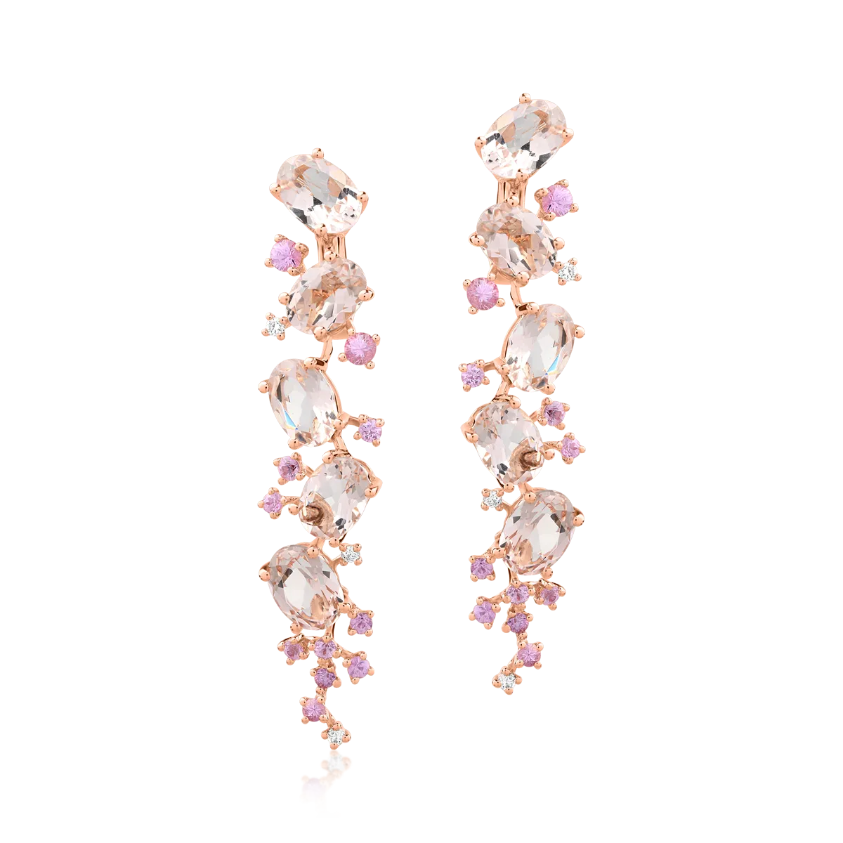 Cercei din aur roz cu pietre pretioase si semipretioase de 7.4ct
