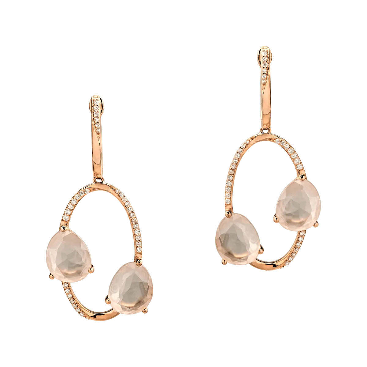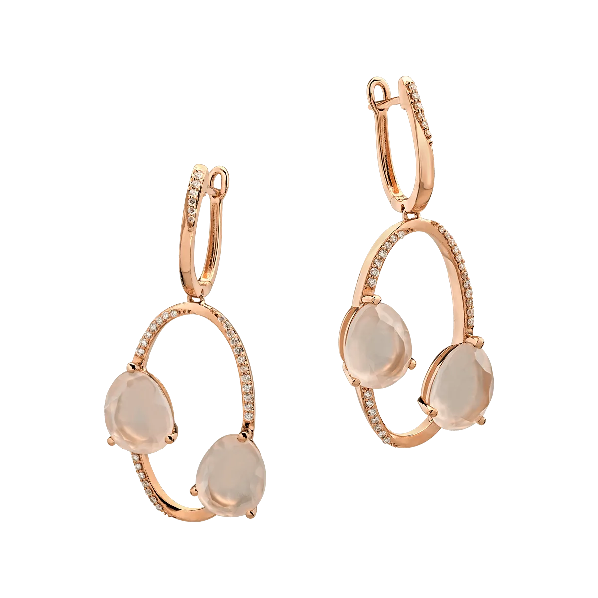 Cercei din aur roz cu quartz roz de 7.655ct si diamante de 0.277ct