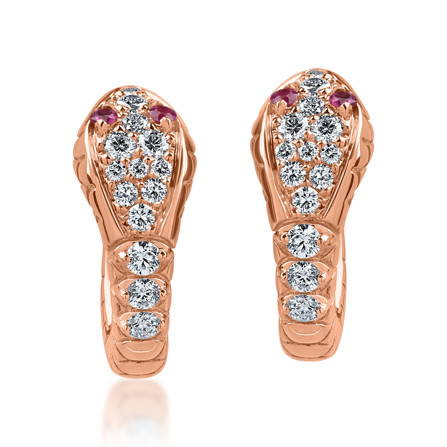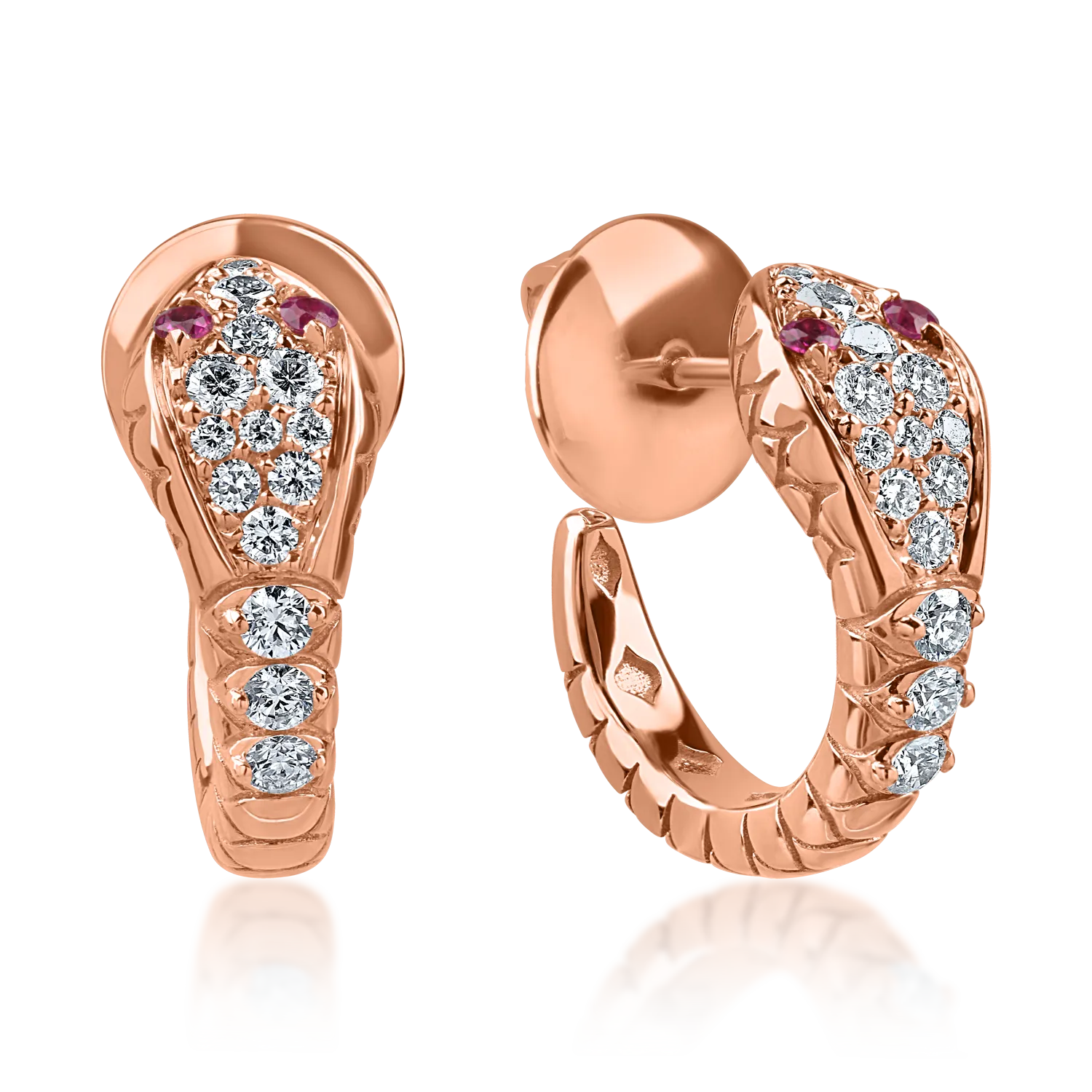 Cercei din aur roz cu rubine de 0.04ct si diamante de 0.26ct