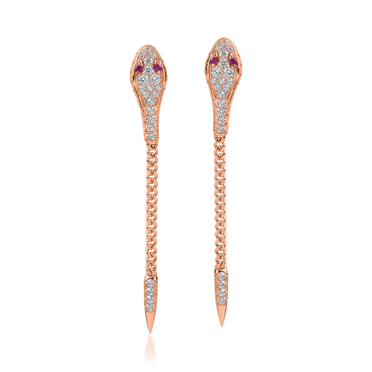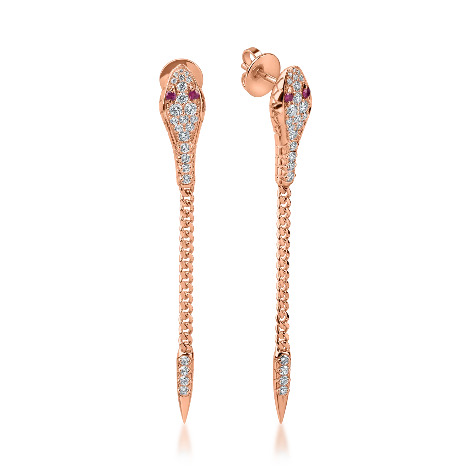 Cercei din aur roz cu rubine de 0.14ct si diamante de 1ct