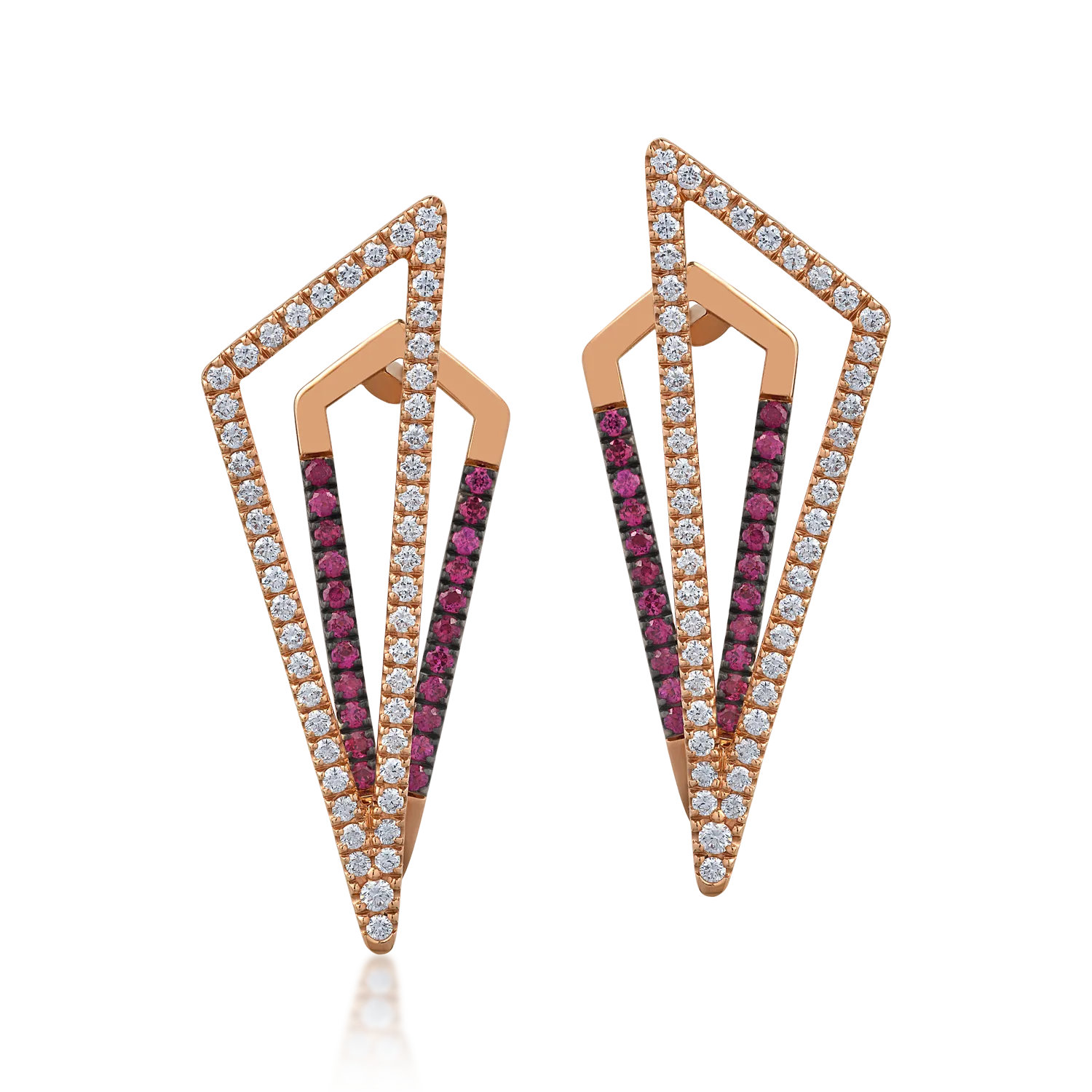 Cercei din aur roz cu rubine de 0.6ct si diamante de 0.98ct