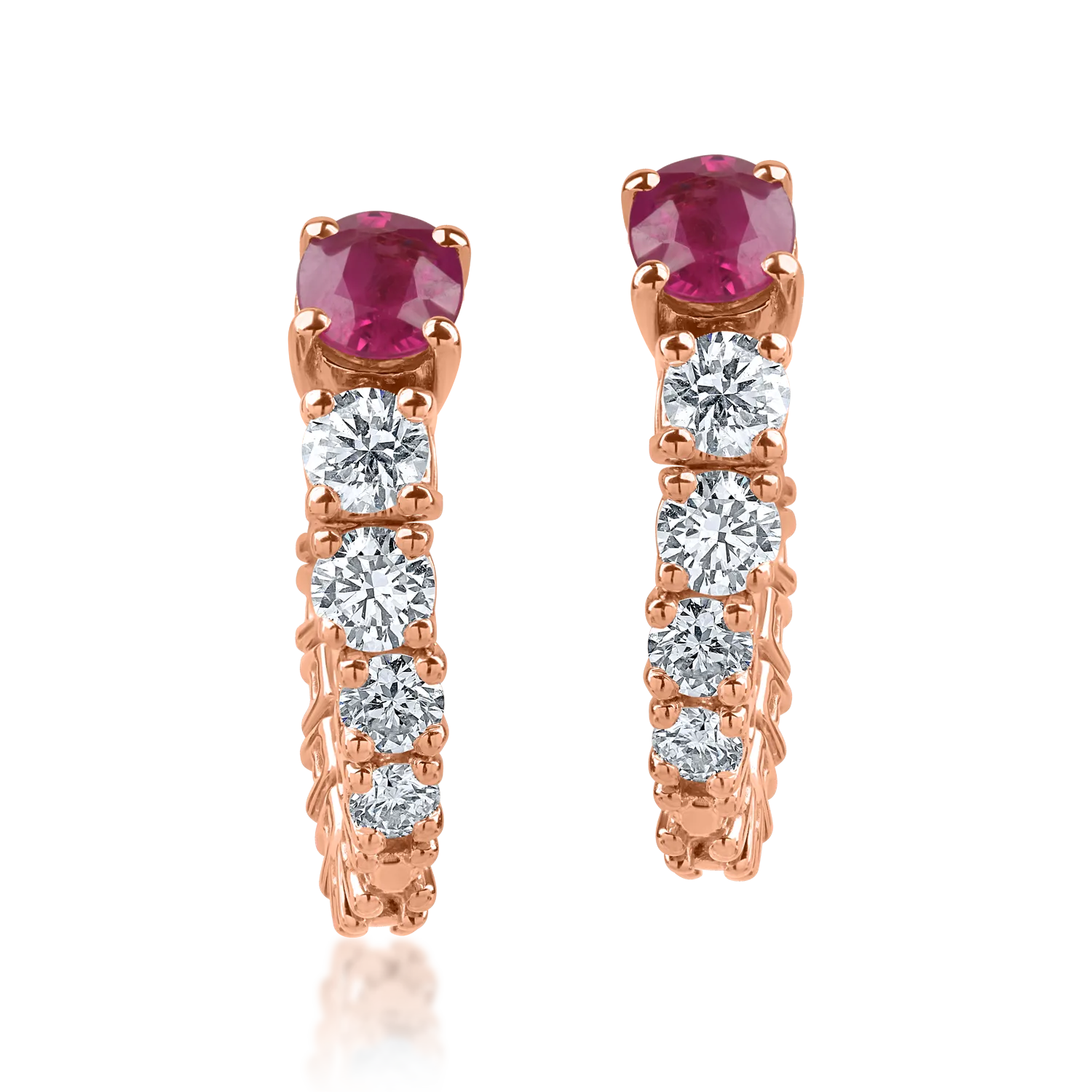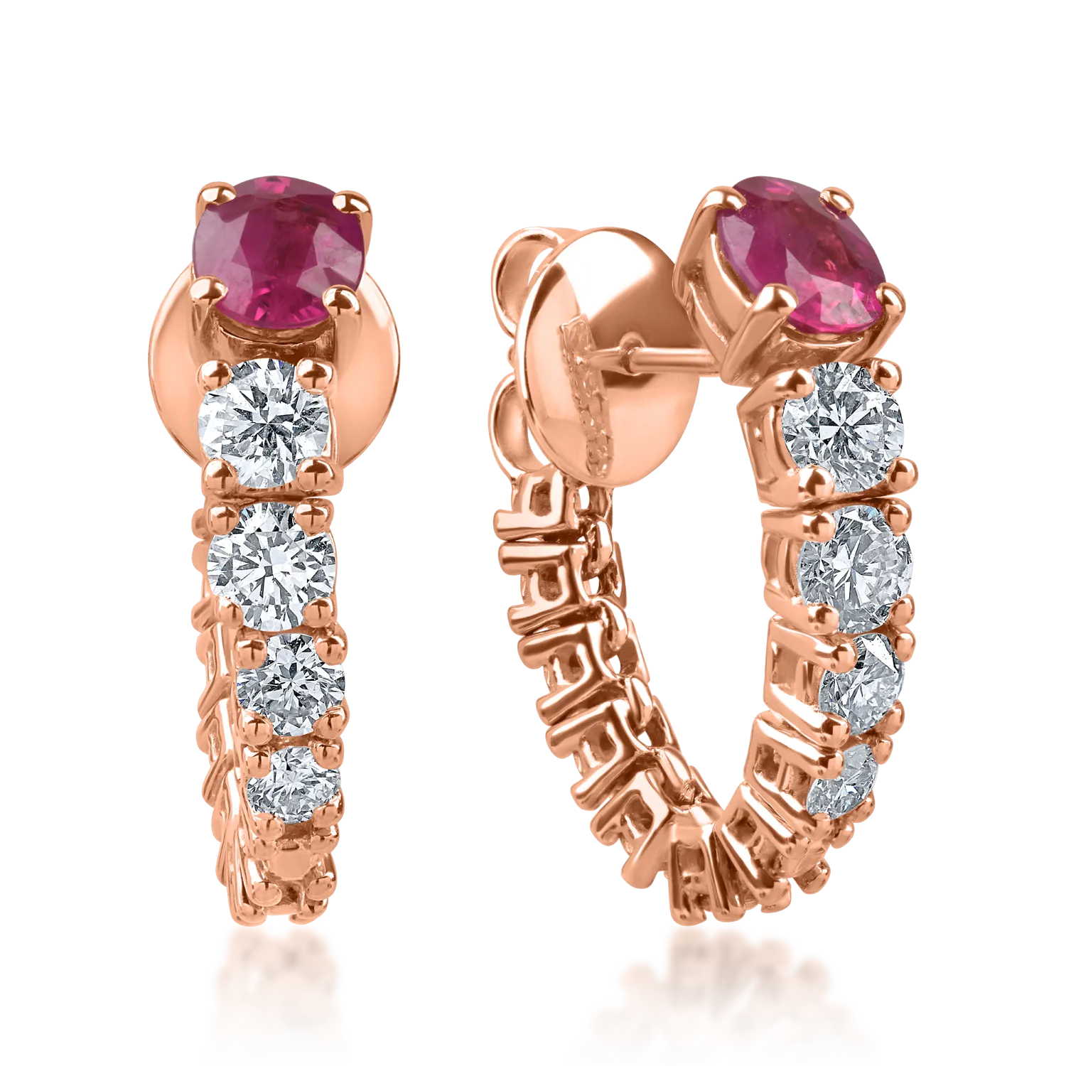 Cercei din aur roz cu rubine ovale de 0.95ct si diamante de 0.74ct