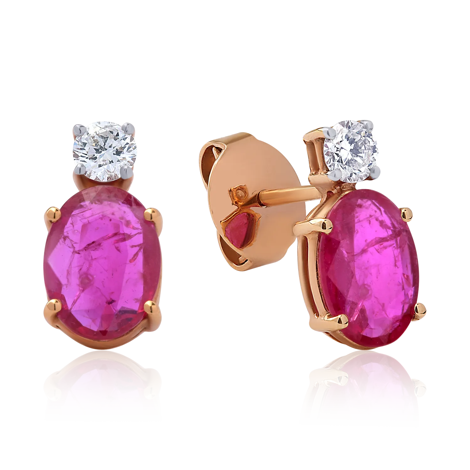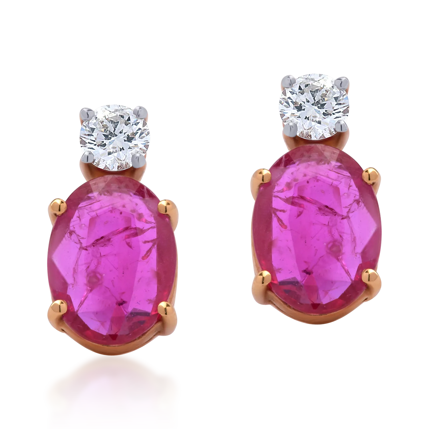 Cercei din aur roz cu rubine ovale de 1.75ct si diamante de 0.26ct