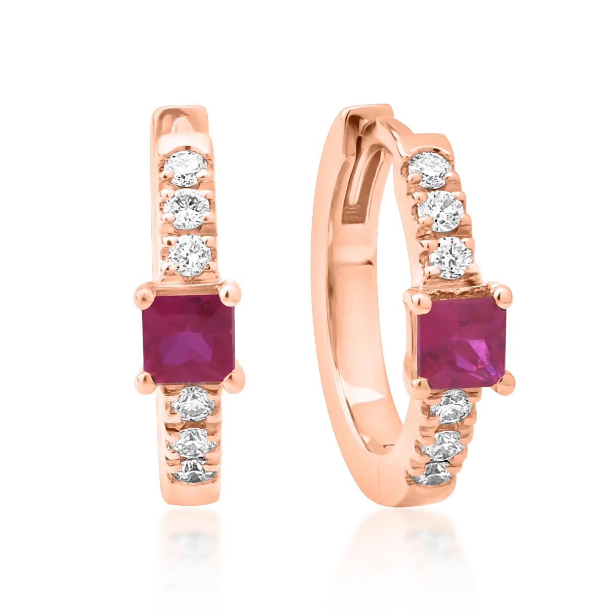 Cercei din aur roz cu rubine princess de 0.15ct si diamante de 0.06ct