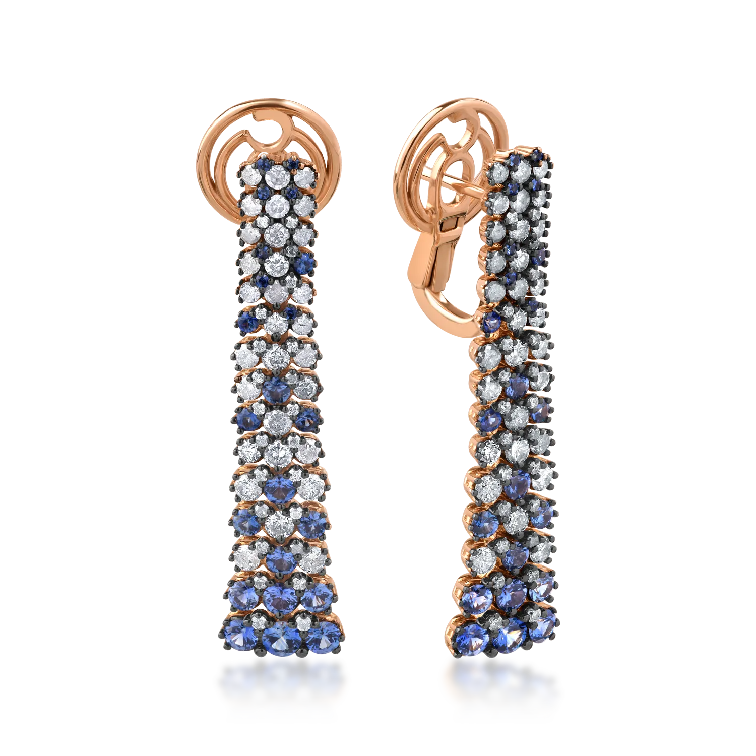 Cercei din aur roz cu safire de 1.6ct si diamante de 1.6ct