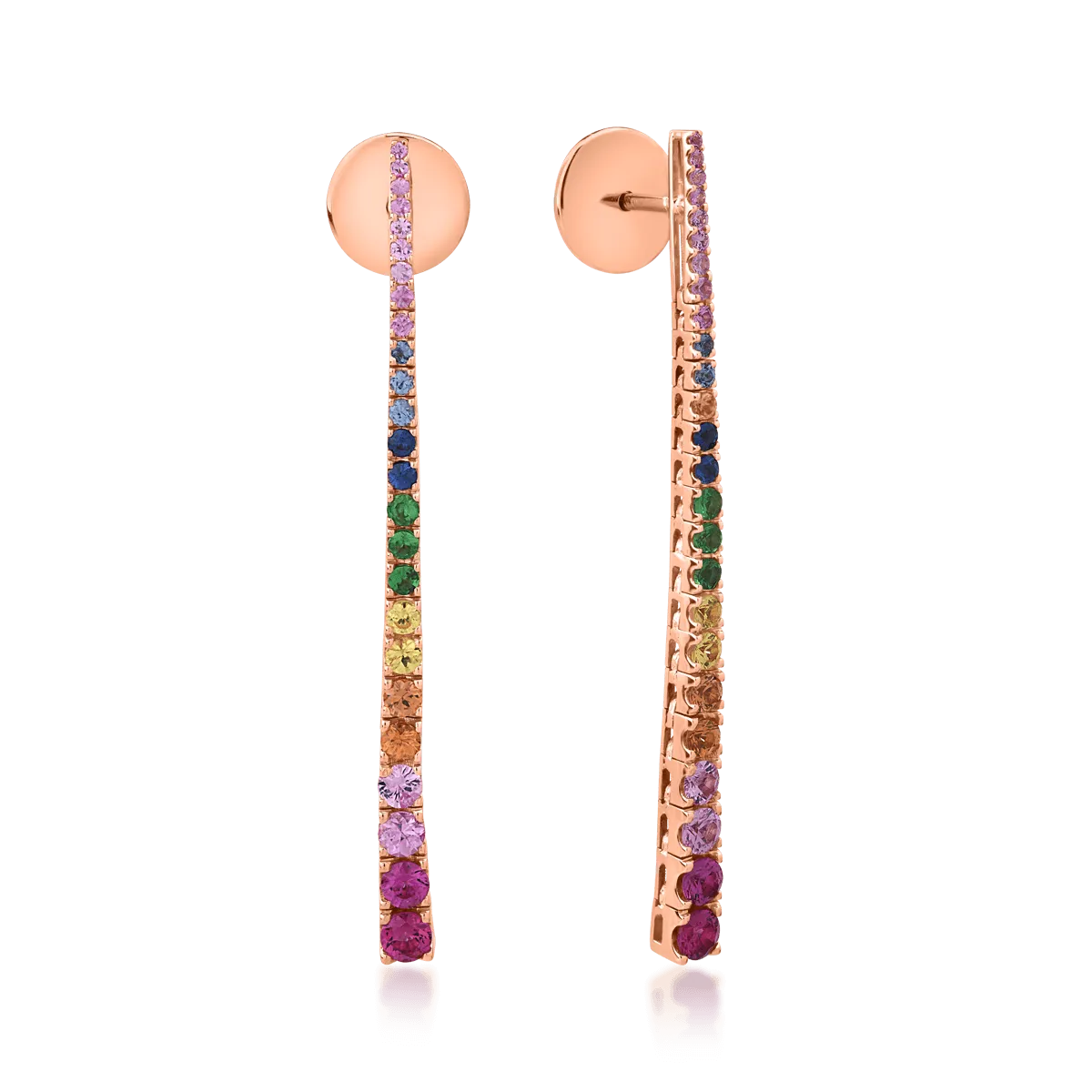 Cercei din aur roz cu safire multicolore de 1.64ct