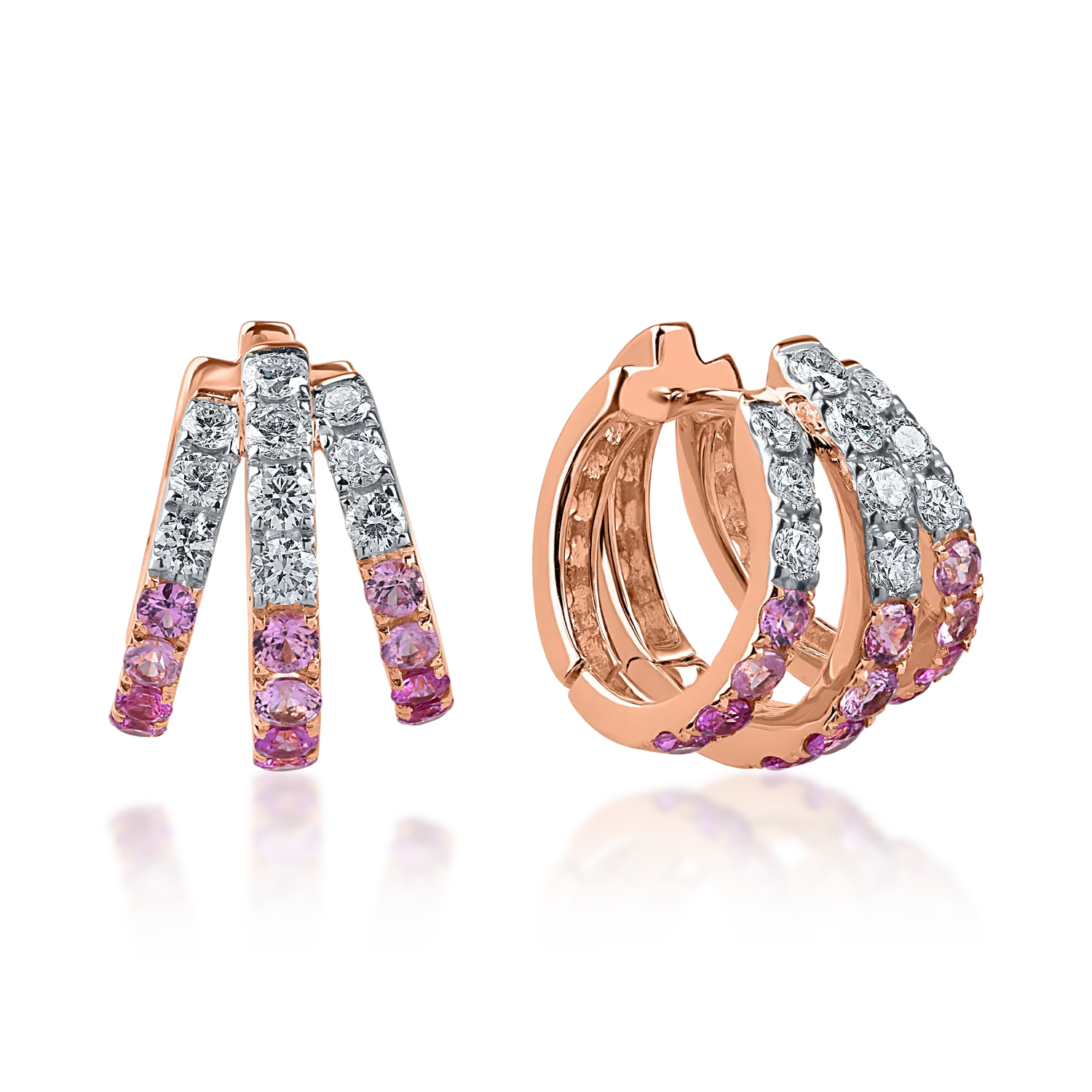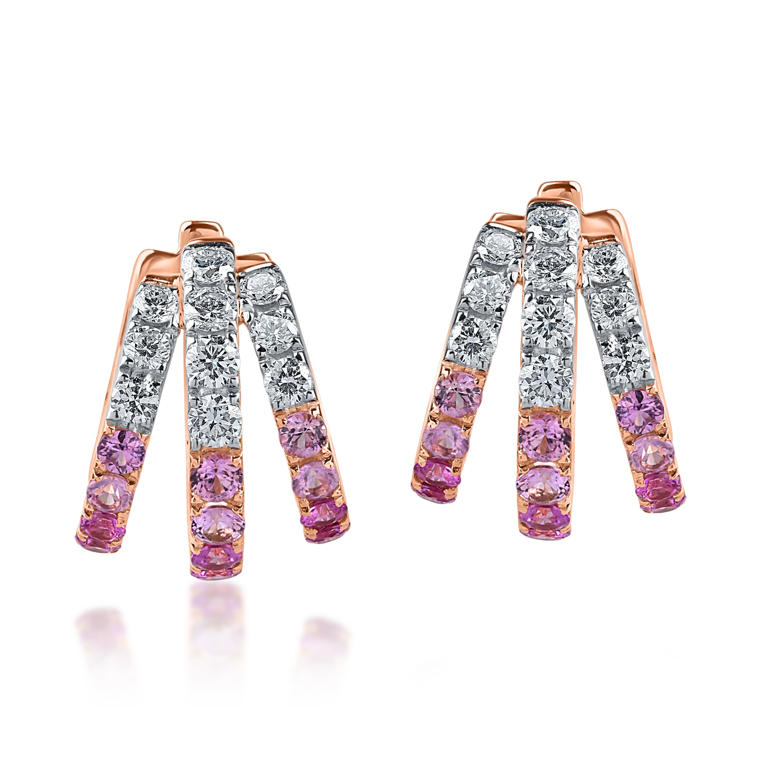 Cercei din aur roz cu safire roz de 1.2ct si diamante de 0.8ct