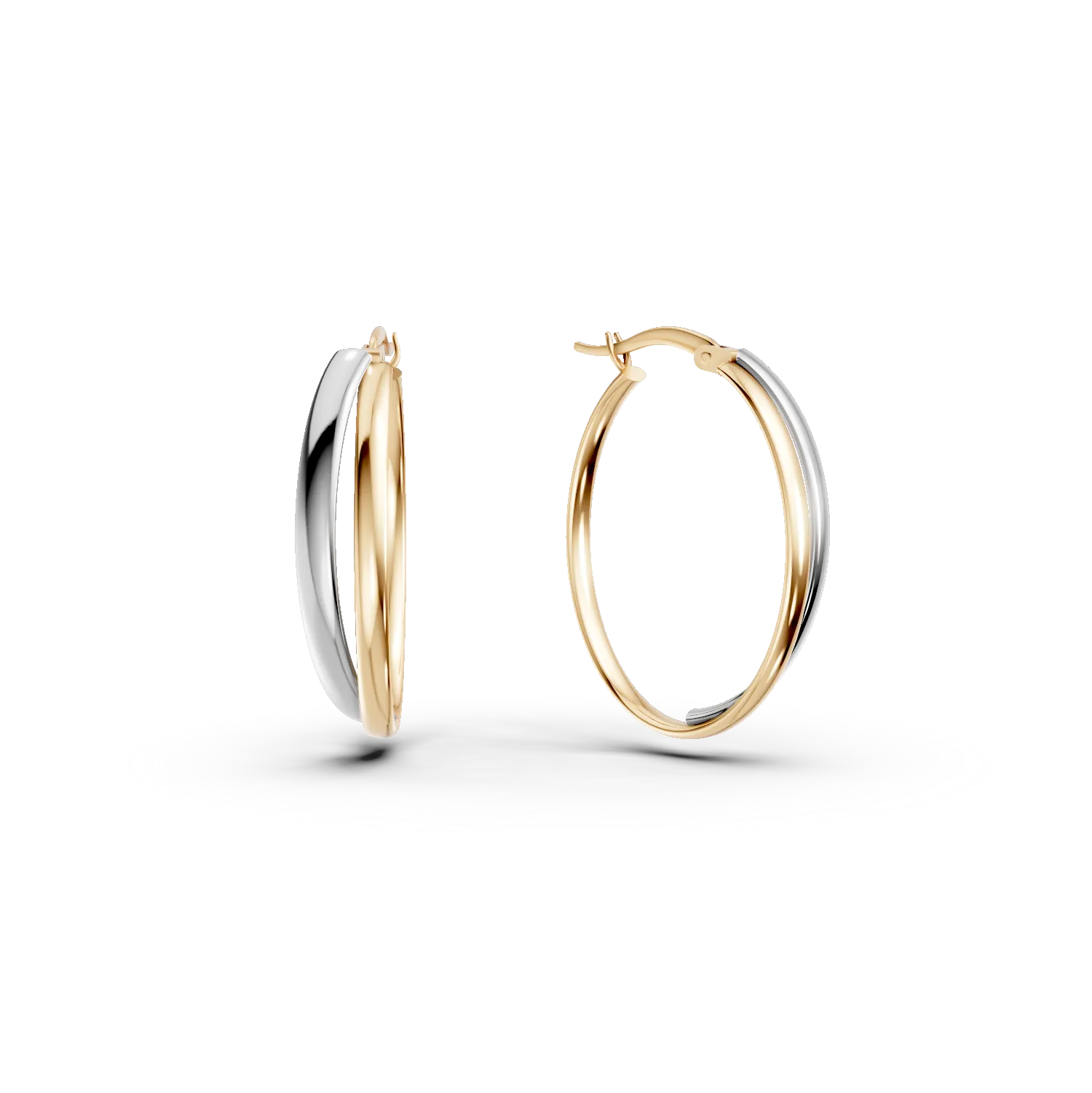 Cercei dubli ovali din aur alb-galben