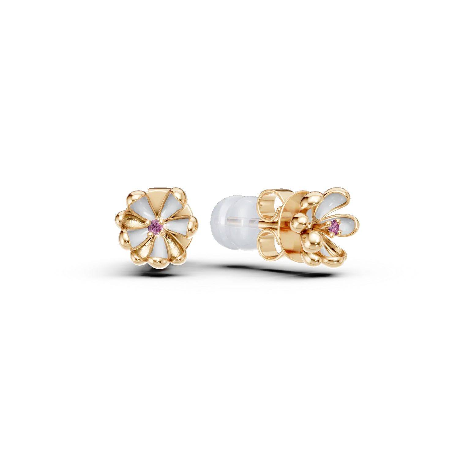 In forma delicata a florii de tei, realizati din aur galben si ornamentati cu safire roz de 0.03ct, acesti cercei sunt mici bijuterii pretioase care aduc delicatete in fiecare zi a copilariei. Un cadou plin de imaginatie, care transforma momentele simple in amintiri pretioase. Cu TEILOR, momentele mici devin magice.
