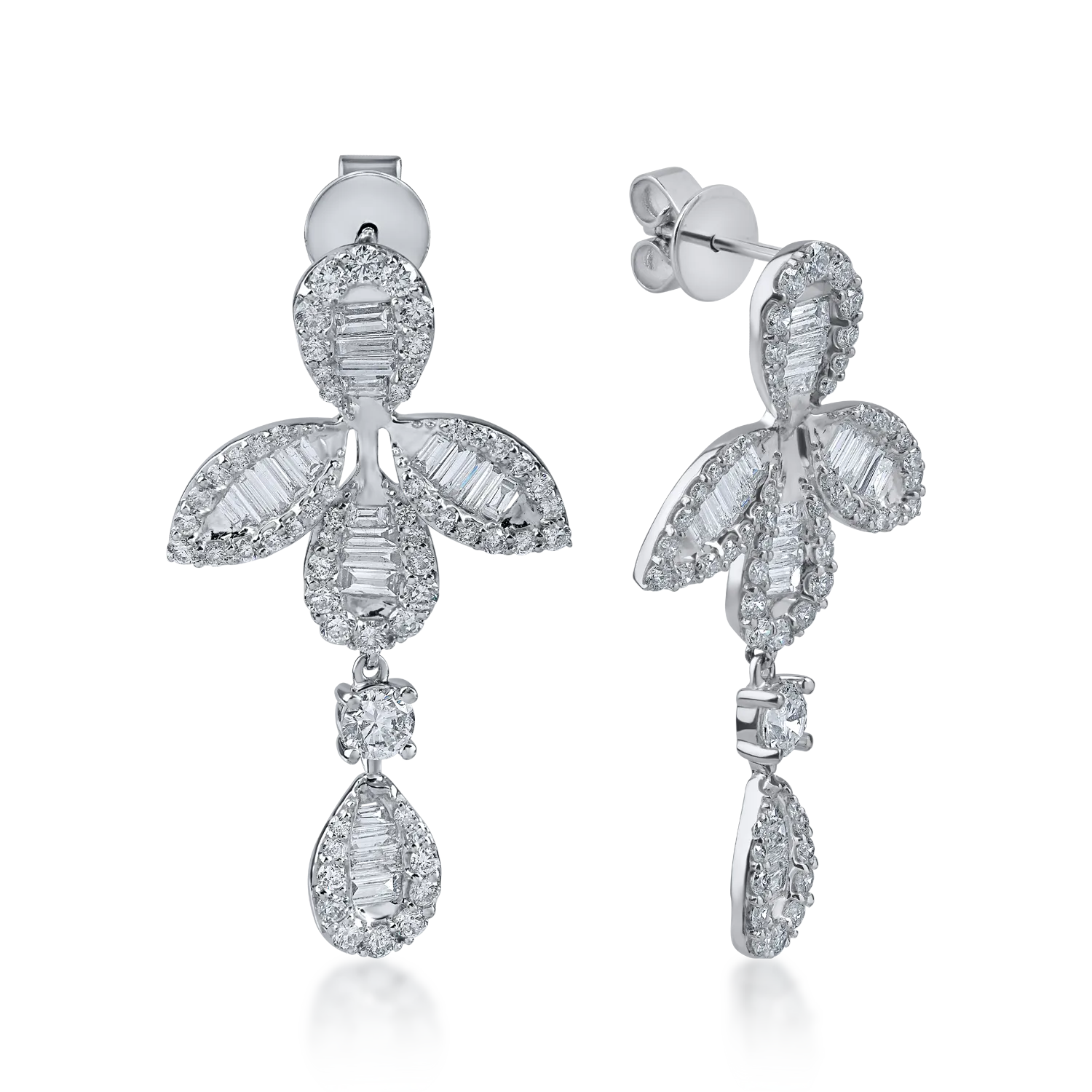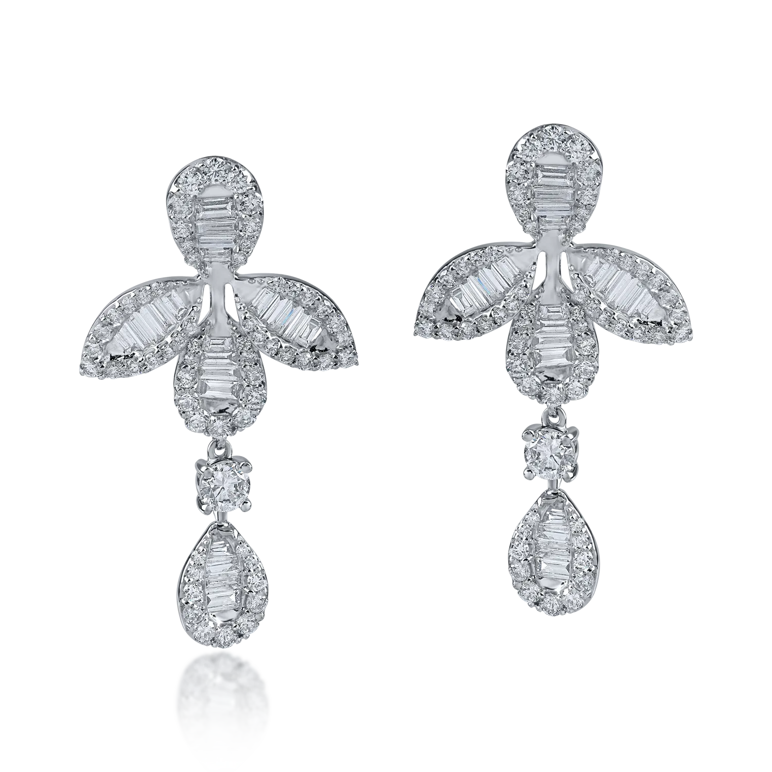 Cercei floare din aur alb cu diamante baguette si rotunde de 2.4ct