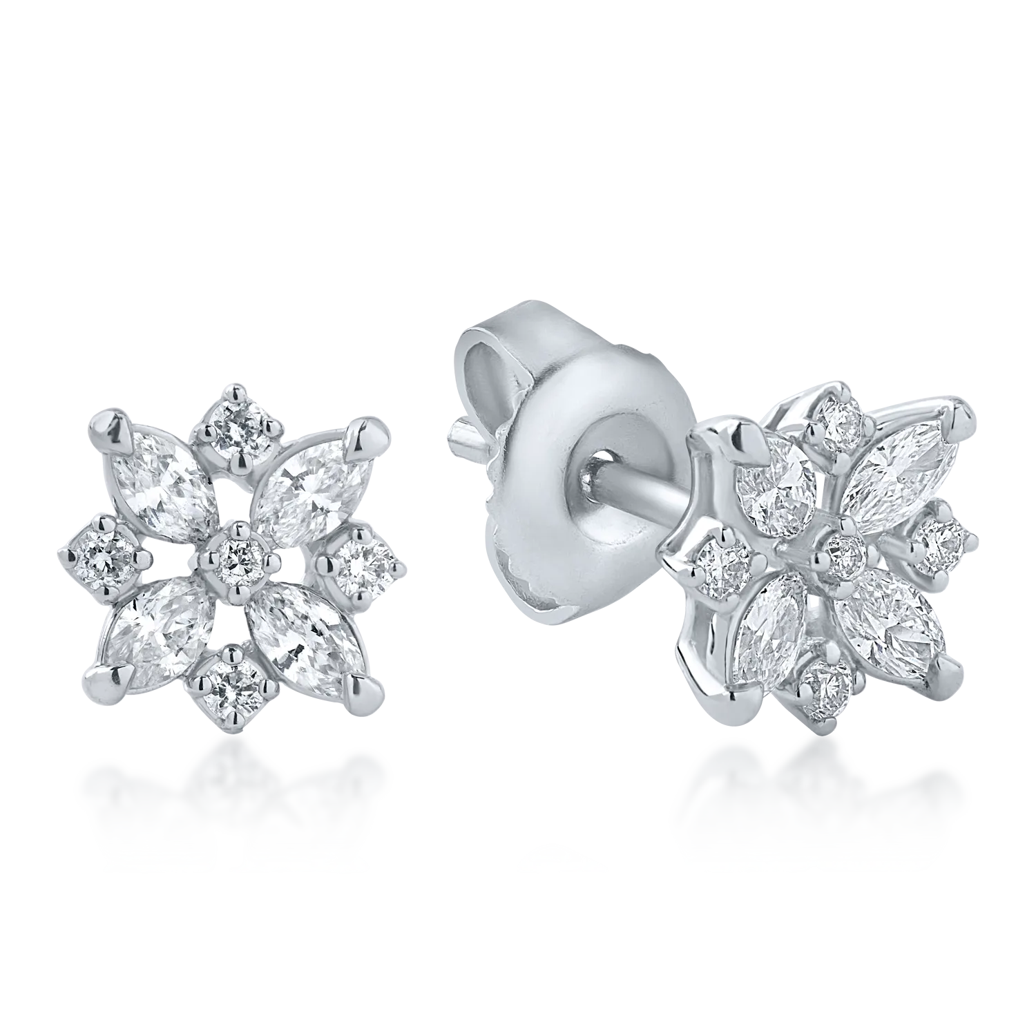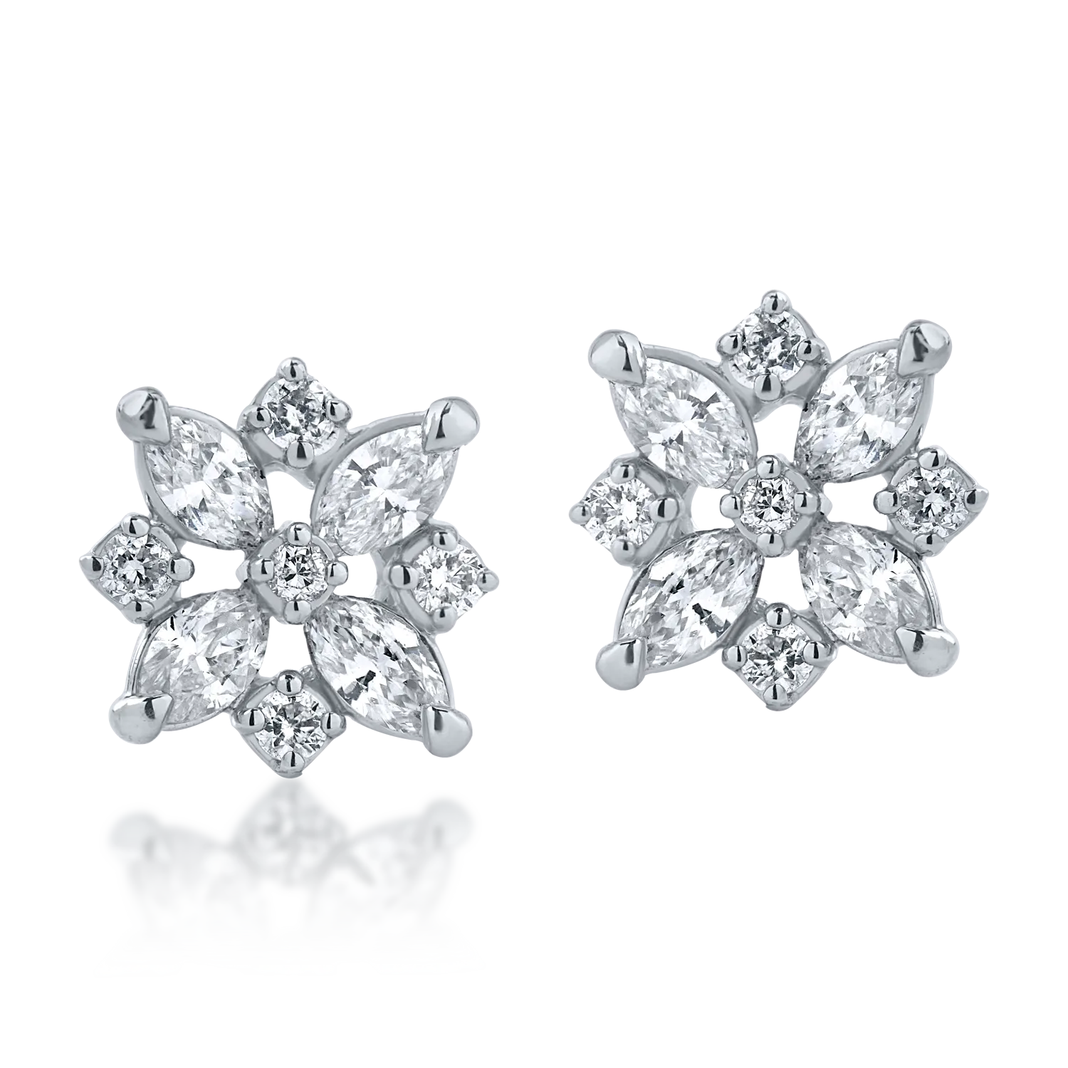 Cercei floare din aur alb cu diamante marquise si rotunde de 0.47ct