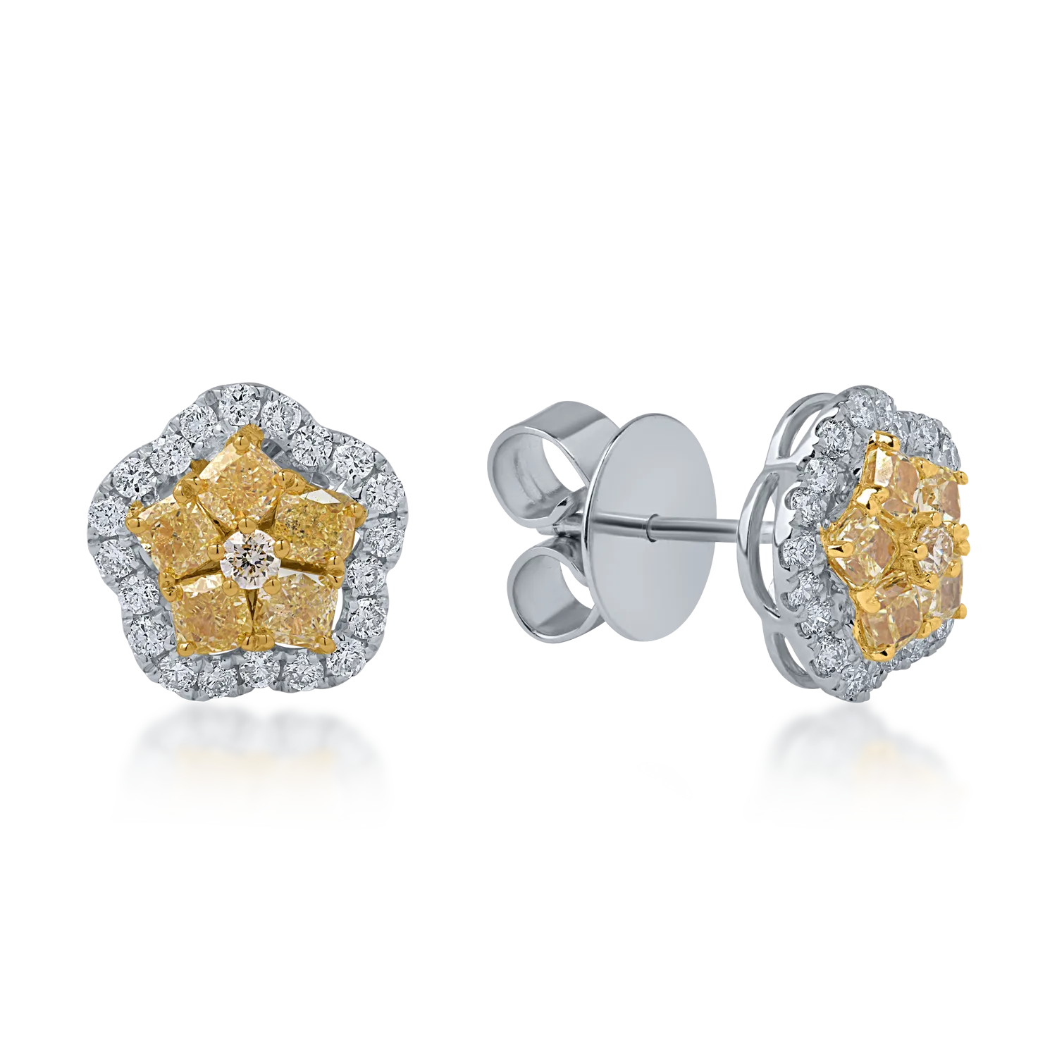 Cercei floare din aur alb-galben cu diamante galbene si incolore de 1.5ct