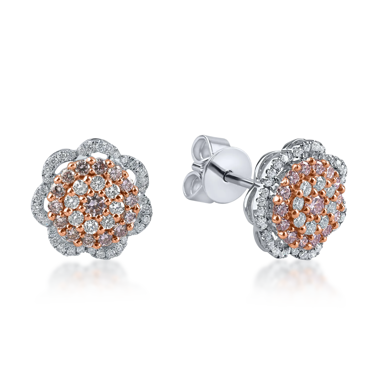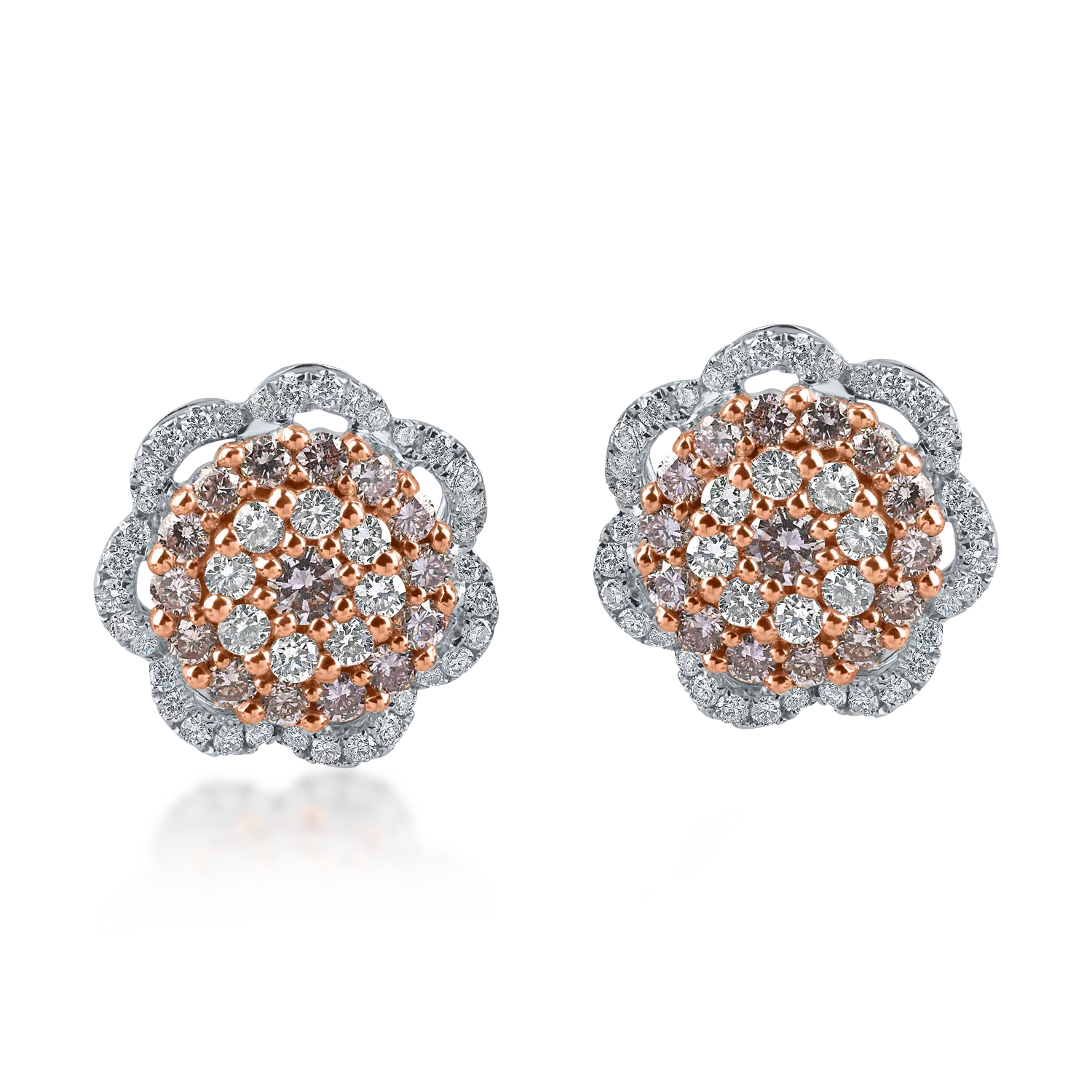 Cercei floare din aur alb-roz cu diamante de 0.8ct