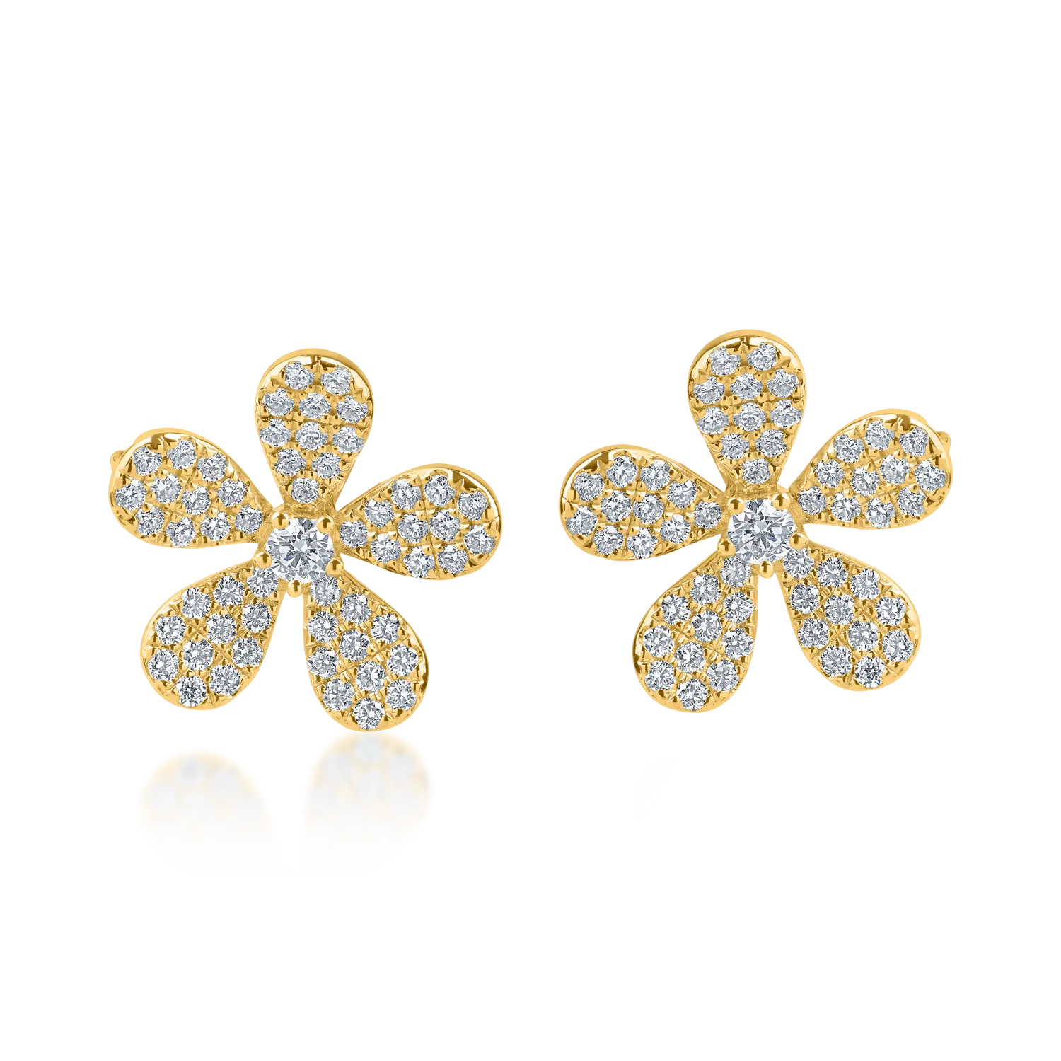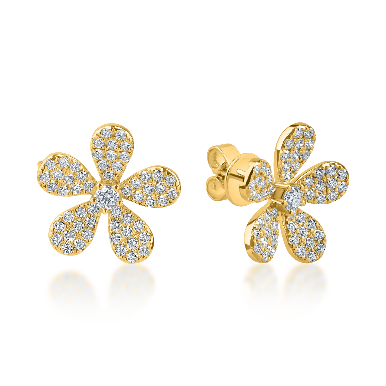 Cercei floare din aur galben cu diamante de 1ct