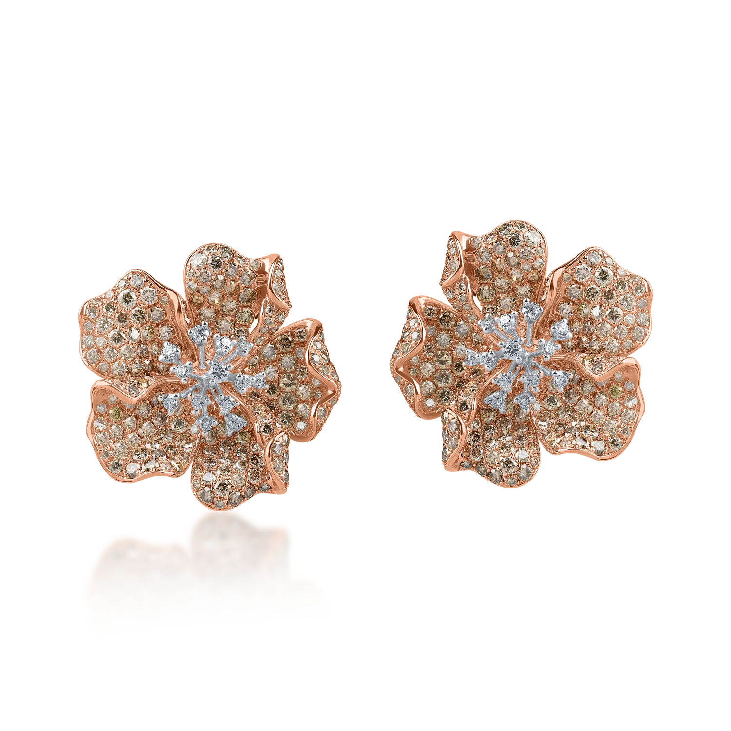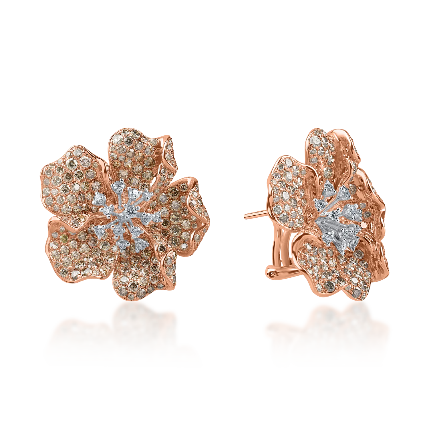 Cercei floare din aur roz cu diamante maro si incolore de 6.6ct