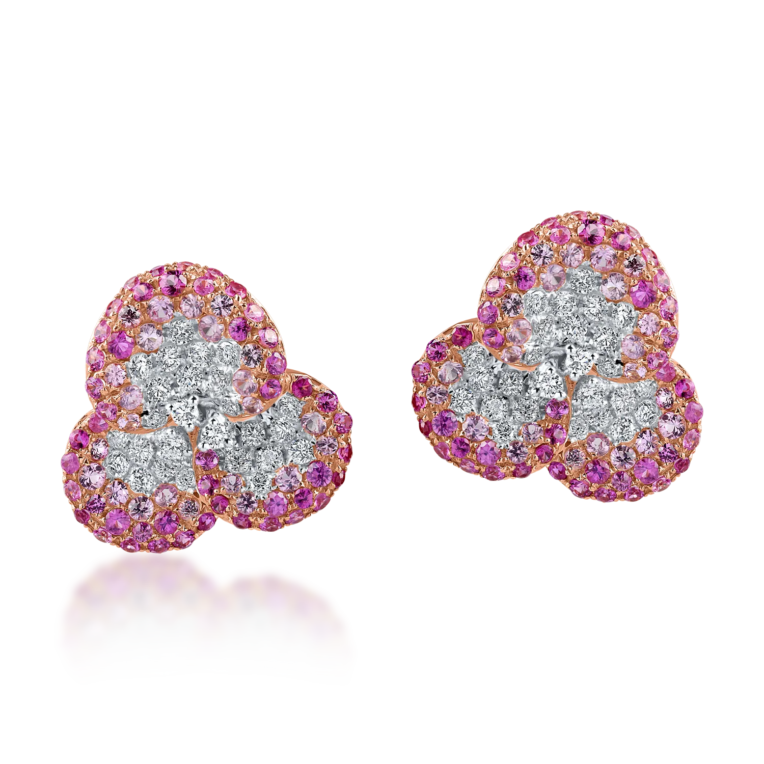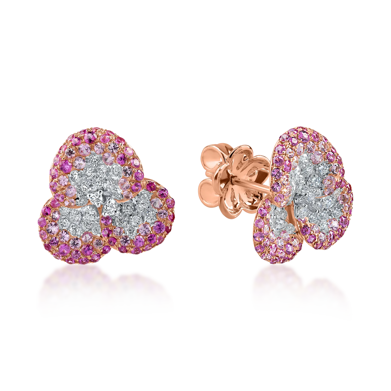 Cercei floare din aur roz cu diamante si safire roz de 2.4ct