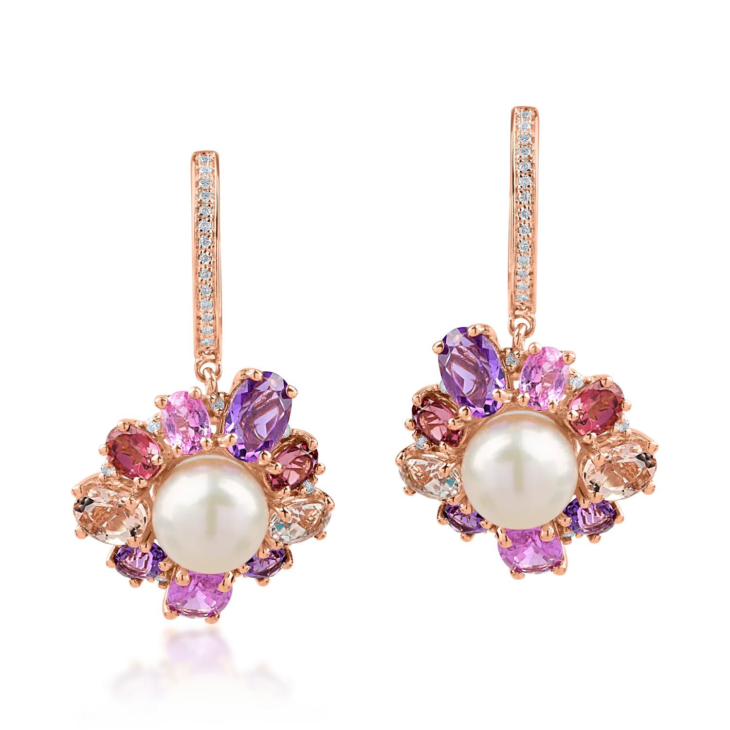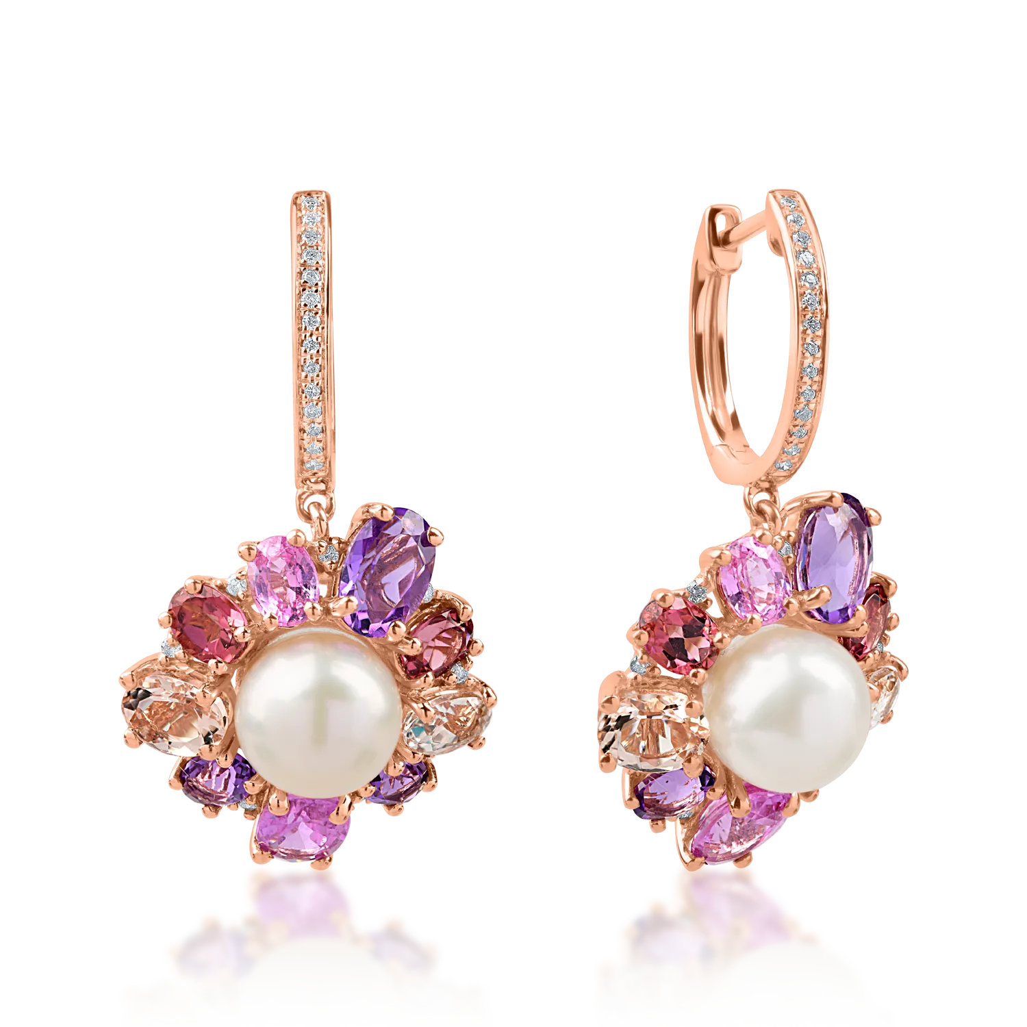 Cercei floare din aur roz cu pietre pretioase si semipretioase de 11.9ct
