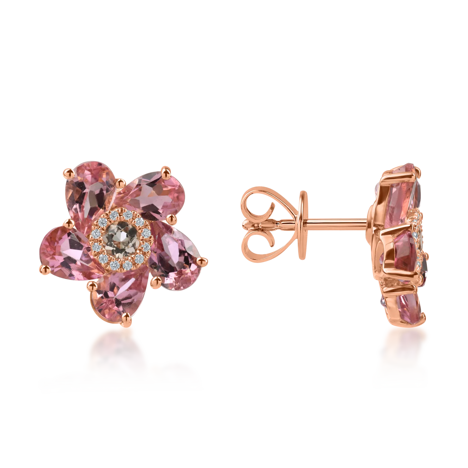 Cercei floare din aur roz cu pietre pretioase si semipretioase de 4.6ct