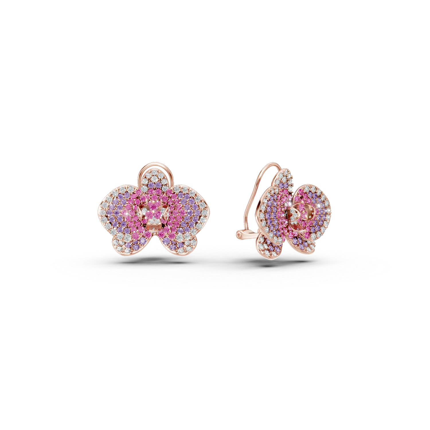Cercei floare din aur roz cu safire roz de 2.2ct si diamante de 0.55ct