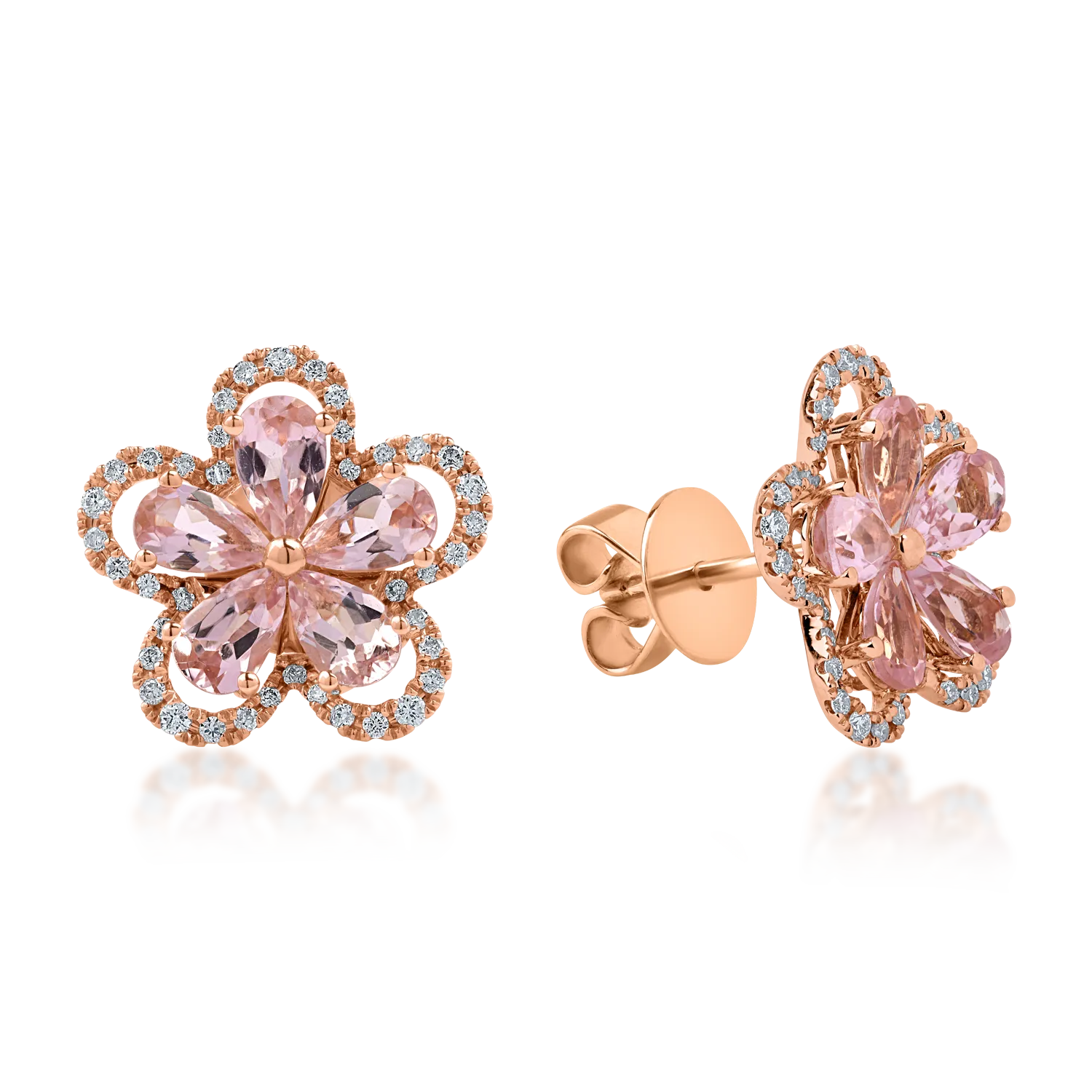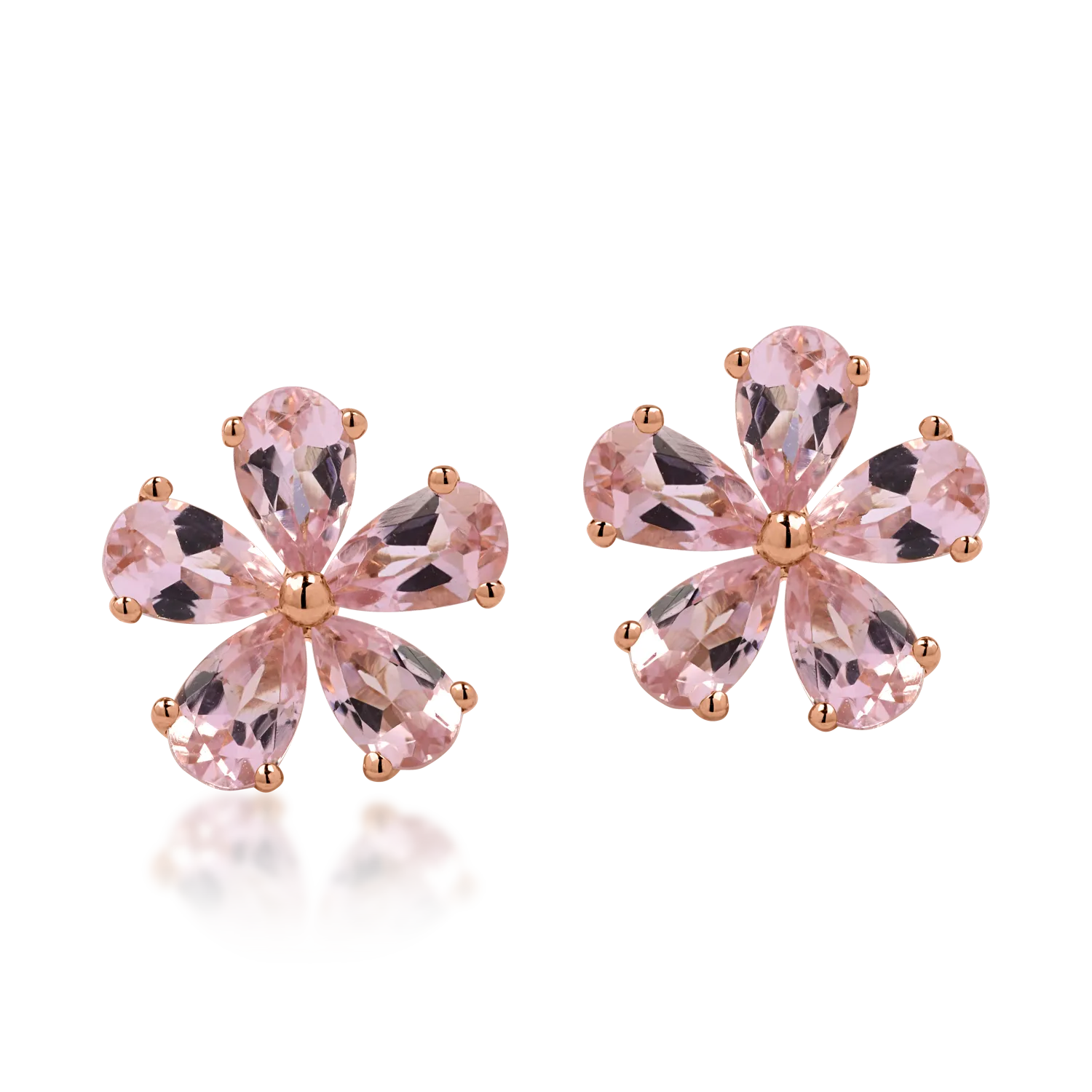 Cercei floare din aur roz cu turmaline roz pear de 1.9ct si diamante de 0.31ct