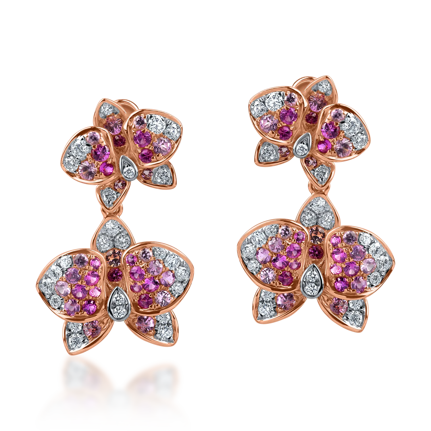 Cercei flori din aur roz cu safire roz de 0.8ct si diamante de 0.4ct