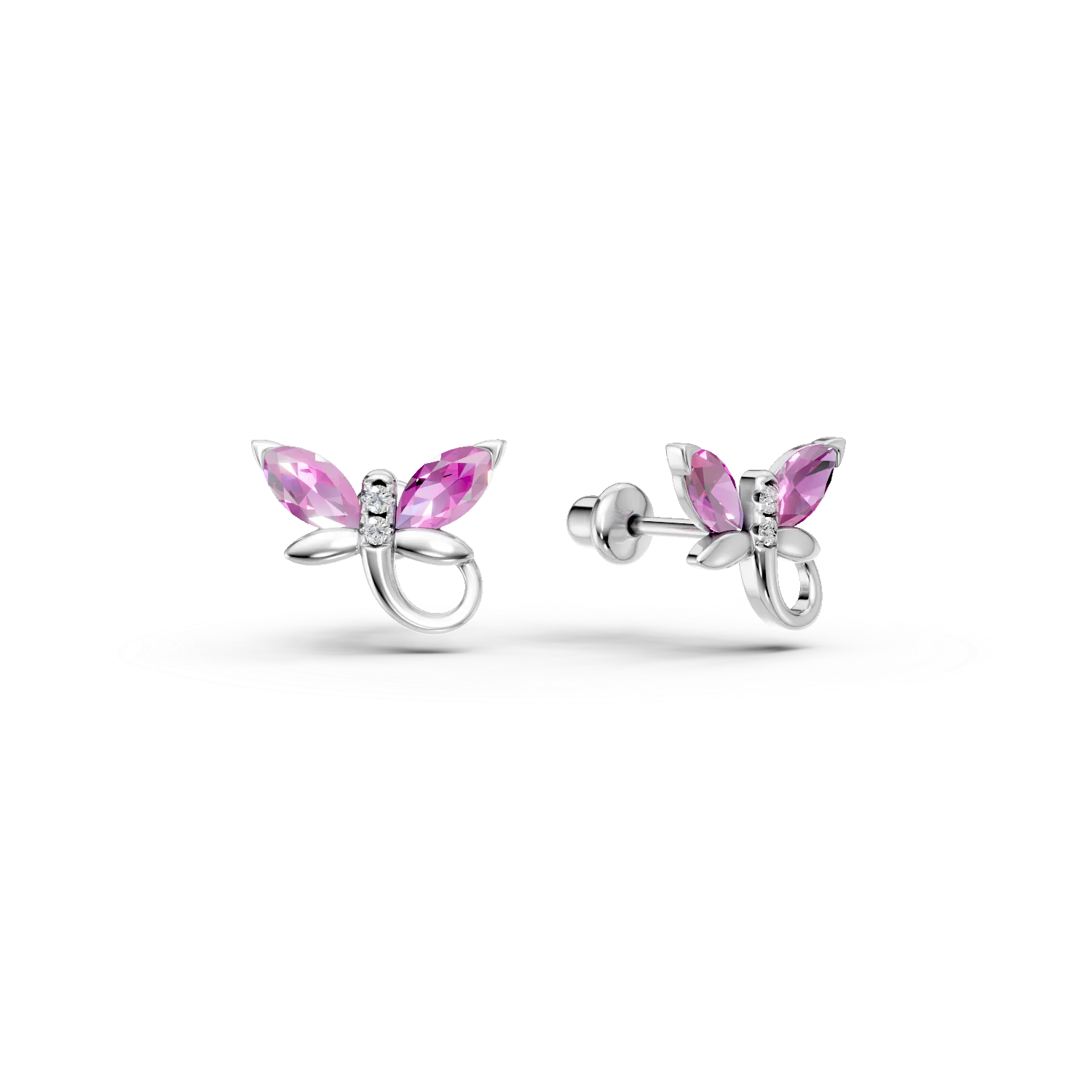 Cercei fluturasi din aur alb cu safire roz marquise de 0.3ct si diamante round de 0.01ct pentru copii