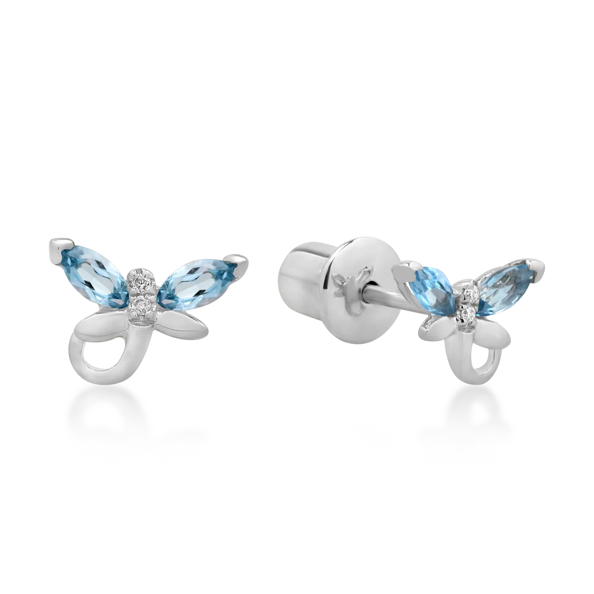 Cercei fluturasi din aur alb cu topaz albastru marquise de 0.4ct si diamante round de 0.01ct pentru copii