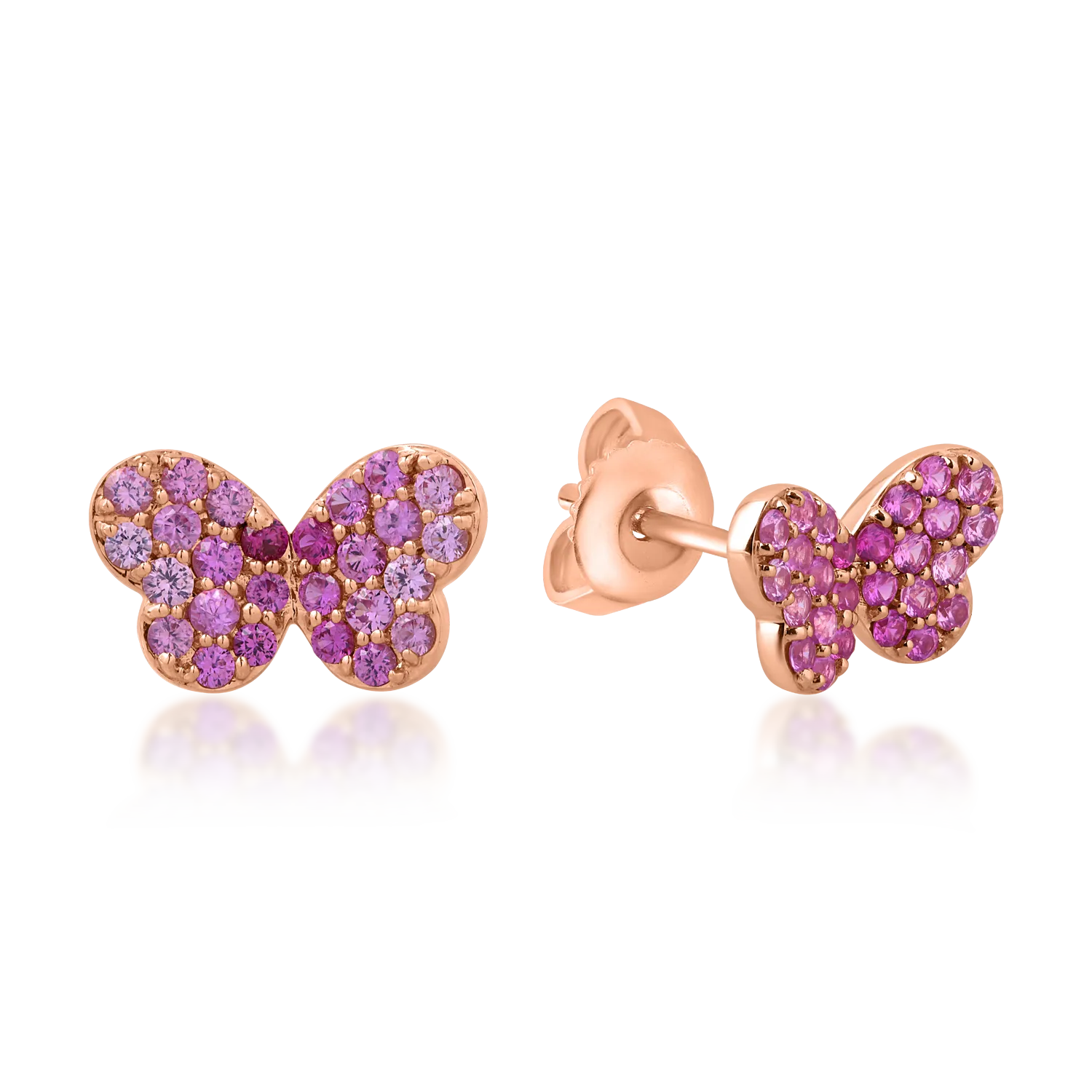 Cercei fluturasi din aur roz cu safire roz de 0.56ct